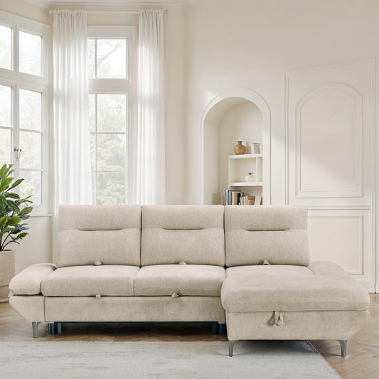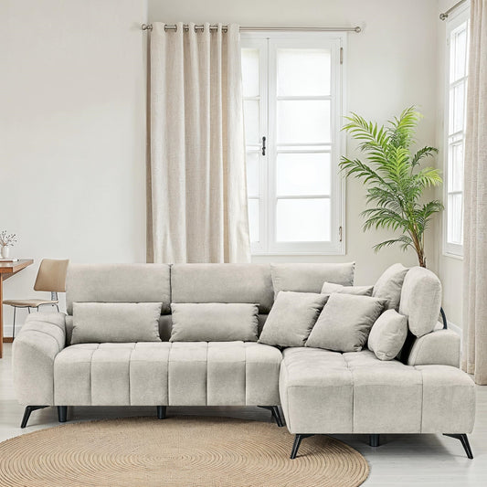 -33%Fournisseur :En précommandeCanapé d'angle convertible avec coffre en tissu et dossier retractable, 267x161xH97CM - LAVINO
