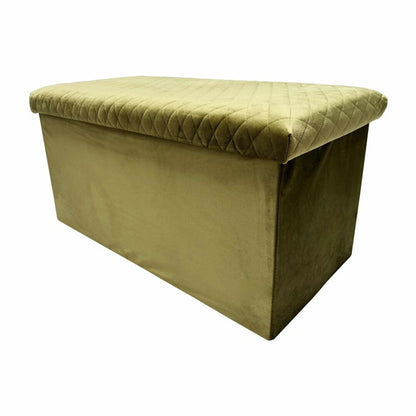 Un objet pratique et agréable à l'oeil.  Il sert de coffre de rangement, de repose pied, etc ... Un velours doux et chaud, chaleureux et convivial pour un intérieur rangé dans le style et l'élégance. Dimensions: Longueur 76 cm,  hauteur 38 cm, profondeur 38 cm. Coloris: vert sapin, taupe, vert olive, orange, gris anthracite, curry, moutarde, rouge, bleu pétrole et gris souris. Conseil d'entretien: En cas de salissures, nettoyer la surface souillée à l'aide d'un chiffon humide en coton. Ne pas utiliser de détergents ménagers. Aspirer régulièrement le textile à l'aide d'un aspirateur doté de l'embout adéquat.