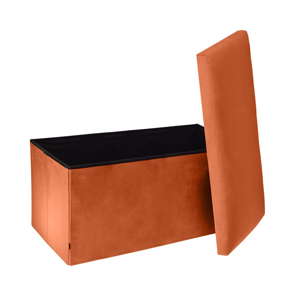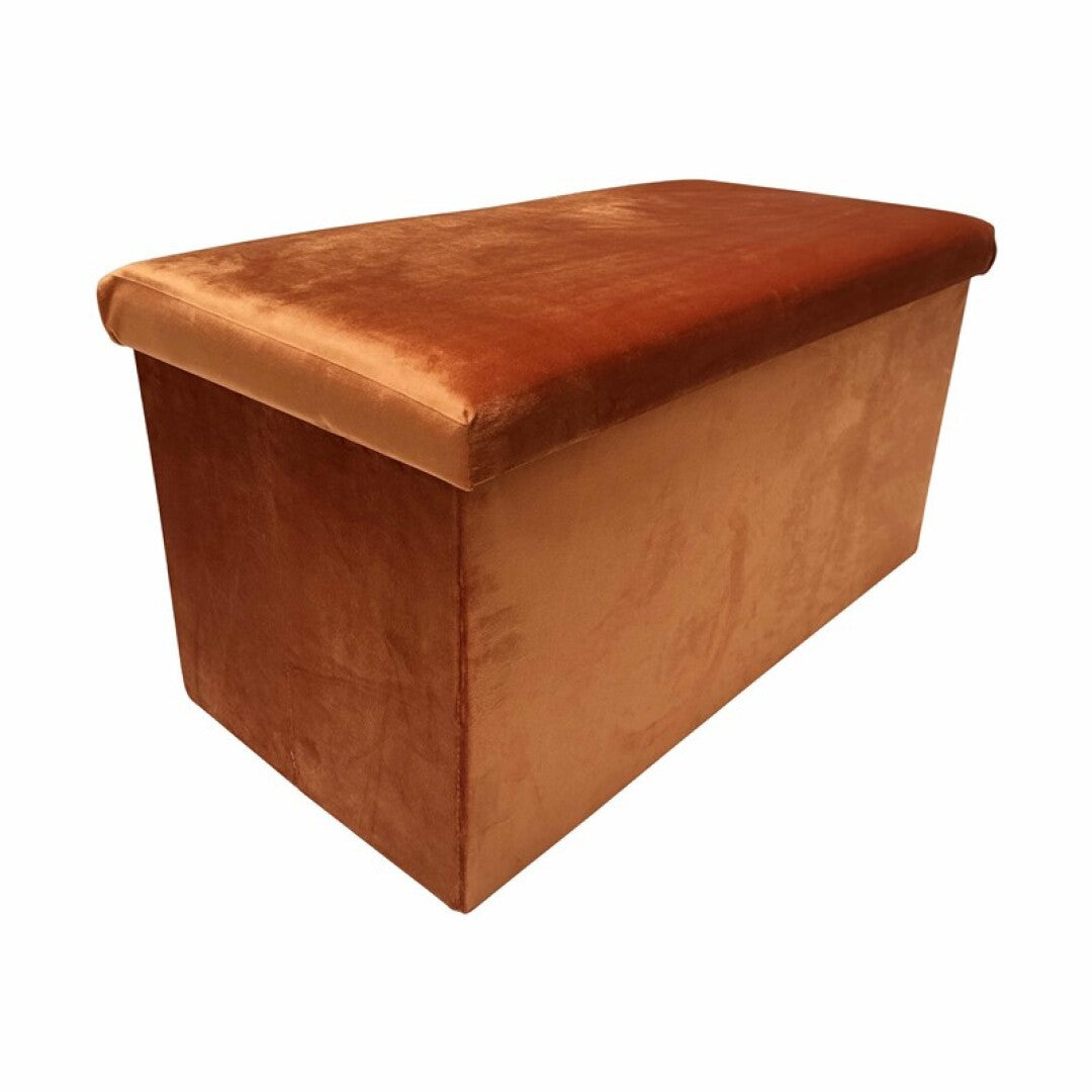 2 en 1 Pouf pliant double et coffre de rangement Velours 76.6 x H 38 cm Dimensions : L. 76,6 x l. 38 x H. 38 cm - Matière de la structure : Bois MDF - Matière du revêtement : Polyester - Velours synthétique - Poids Produit : 5 kg. Un objet pratique et agréable à l'oeil.  Il sert de coffre de rangement, de repose pied, etc ... Un velours doux et chaud, chaleureux et convivial pour un intérieur rangé dans le style et l'élégance. Dimensions: Longueur 76 cm,  hauteur 38 cm, profondeur 38 cm. Coloris: Rouille , gris, beige , camel , rouille , marron , noir  Conseil d'entretien: En cas de salissures, nettoyer la surface souillée à l'aide d'un chiffon humide en coton. Ne pas utiliser de détergents ménagers. Aspirer régulièrement le textile à l'aide d'un aspirateur doté de l'embout adéquat.