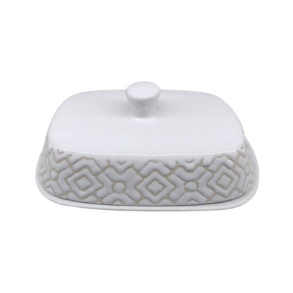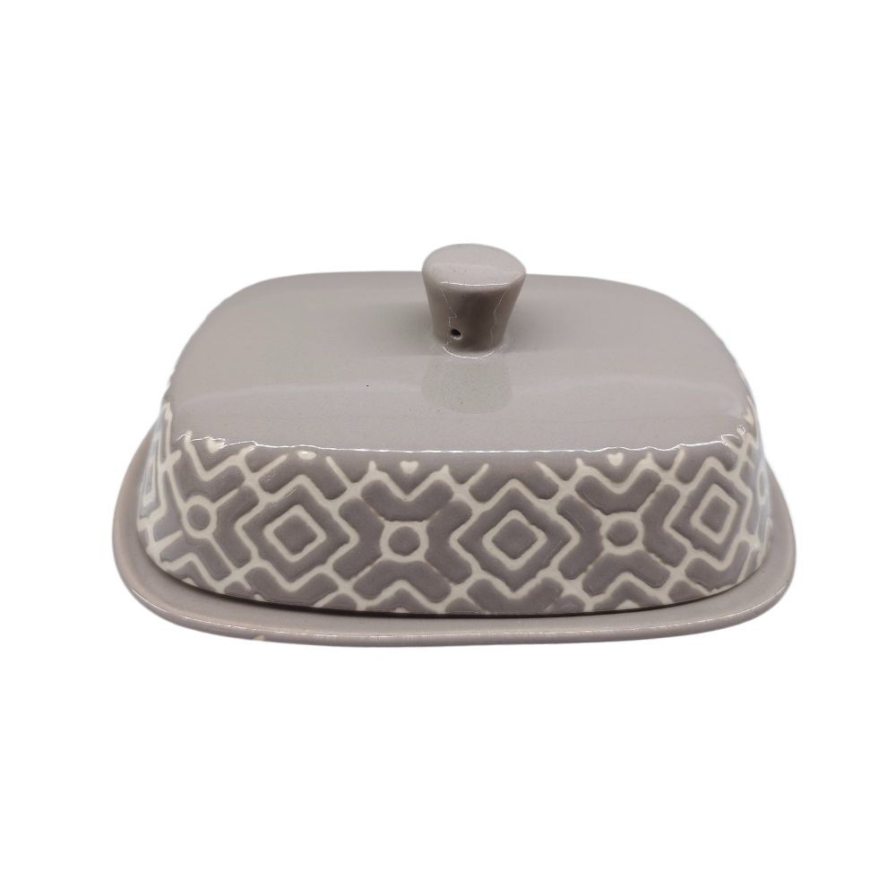 Ce beurrier en céramique, mesurant 19 cm de longueur, 12,5 cm de largeur et 7,5 cm de hauteur, incarne l'élégance et la fonctionnalité dans votre cuisine. Sa conception spacieuse offre amplement d'espace pour conserver votre beurre tout en préservant sa fraîcheur et sa saveur. Avec son design simple et épuré, ce beurrier ajoute une touche de charme rustique à votre table, parfait pour accompagner vos petits-déjeuners et vos repas en famille.