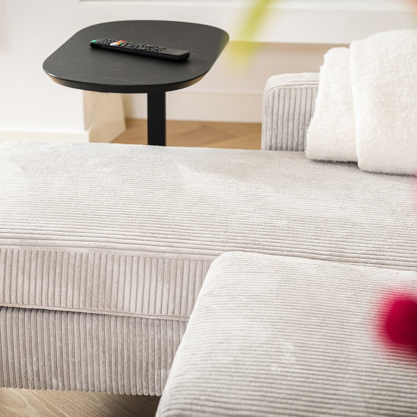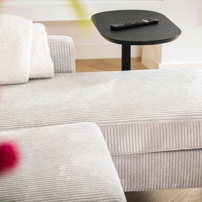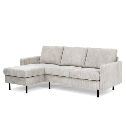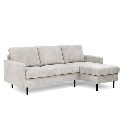 Découvrez notre canapé d'angle réversible en velours côtelé, offrant 3 places confortables. Adaptable à n'importe quel espace, il peut être configuré en angle gauche ou droit. Le tissu de haute qualité est non seulement élégant, mais aussi facilement nettoyable, ajoutant une touche de luxe et de praticité à votre intérieur.