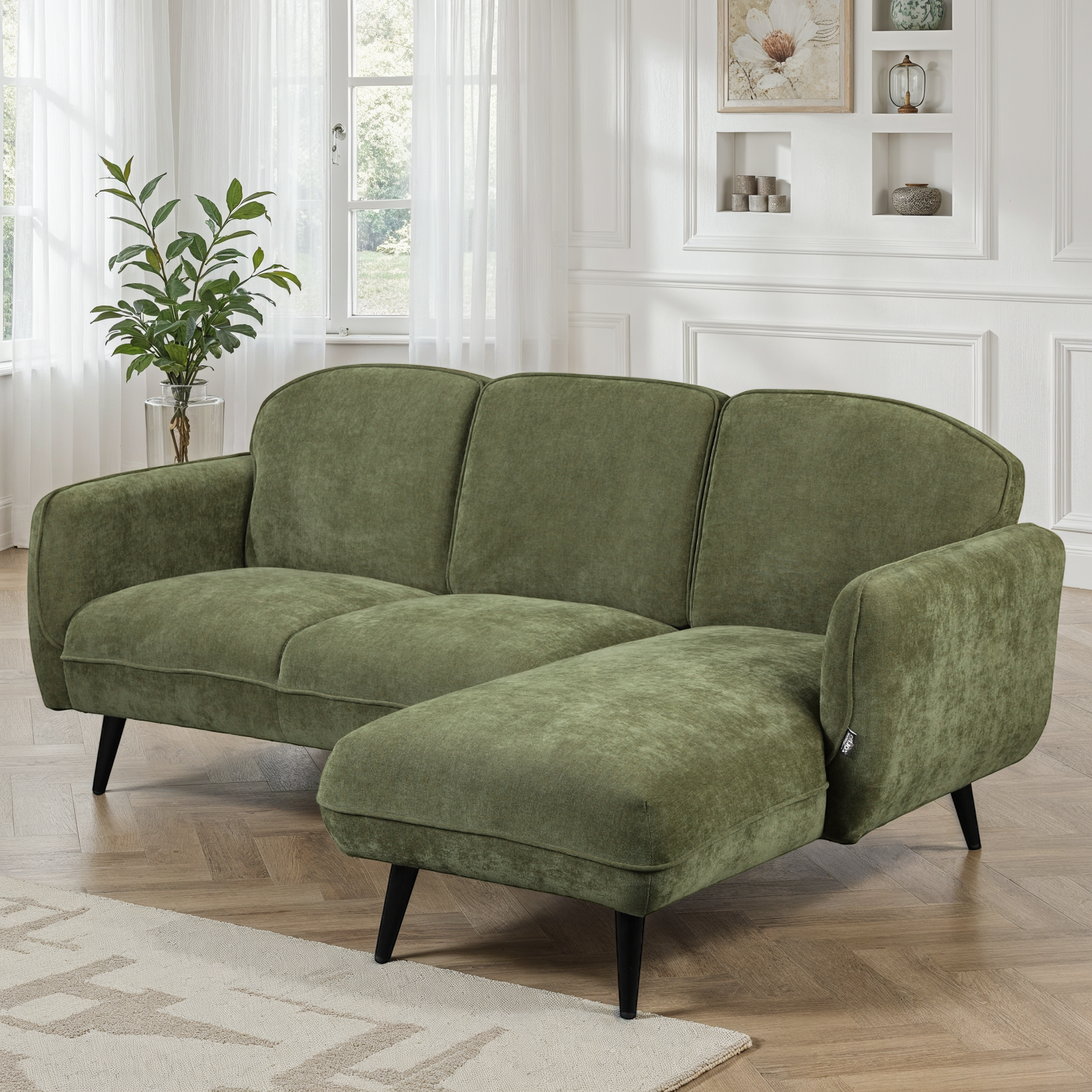 Le canapé d’angle CLARA en tissu anti-tache allie élégance moderne, confort généreux et entretien facile, parfait pour sublimer votre salon.