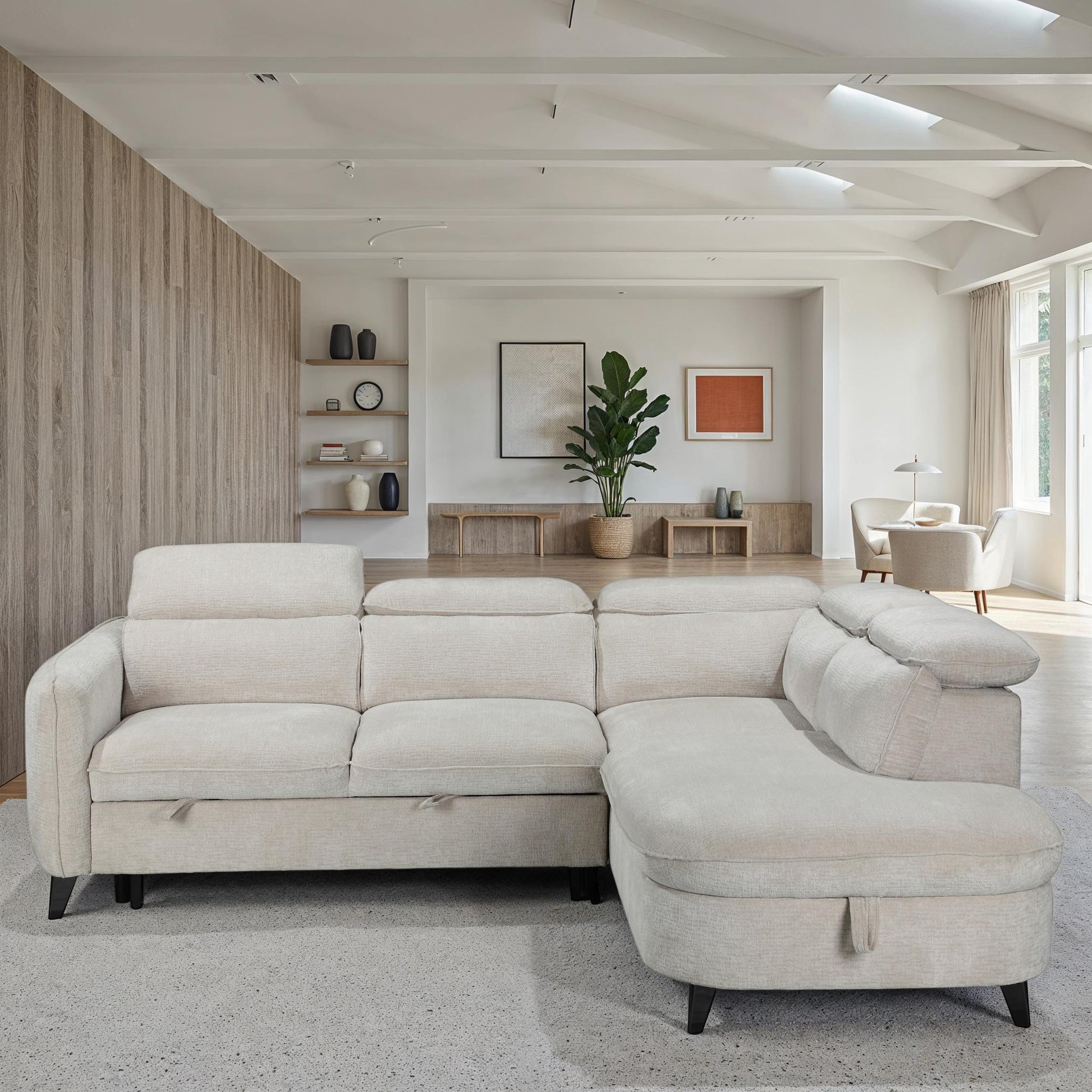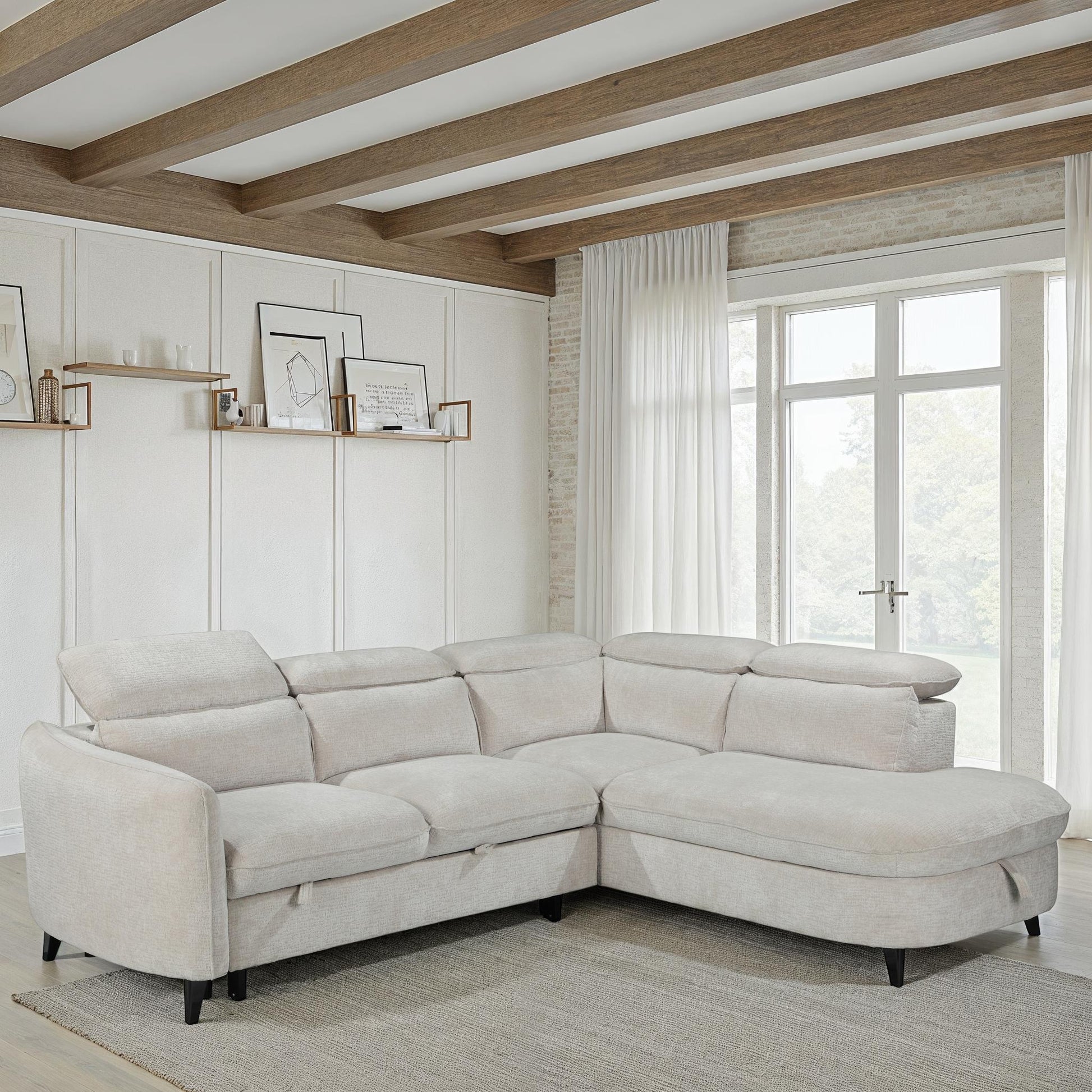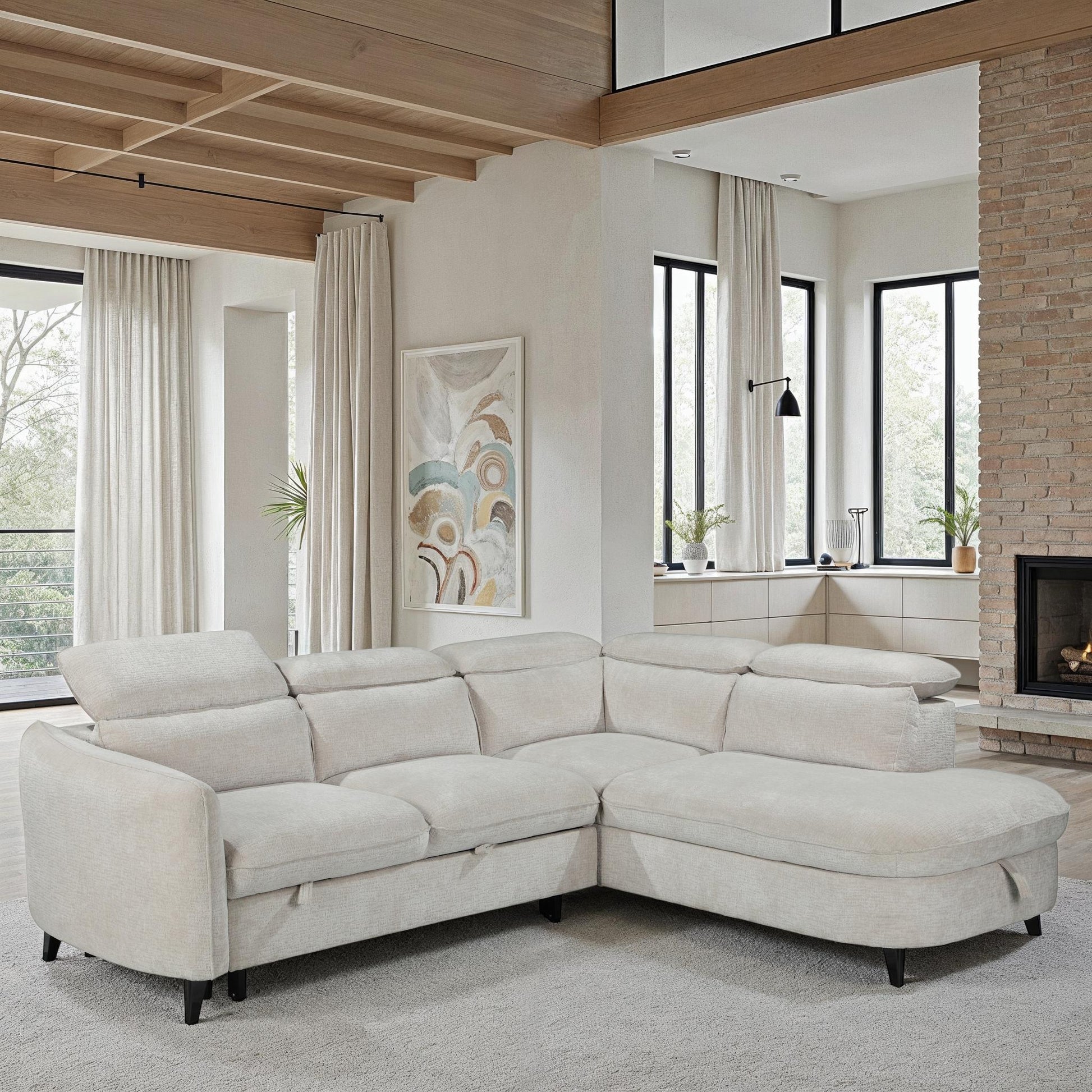 Canapé d'angle en tissu anti tache avec coffre, 249x211xH80CM - RUBY