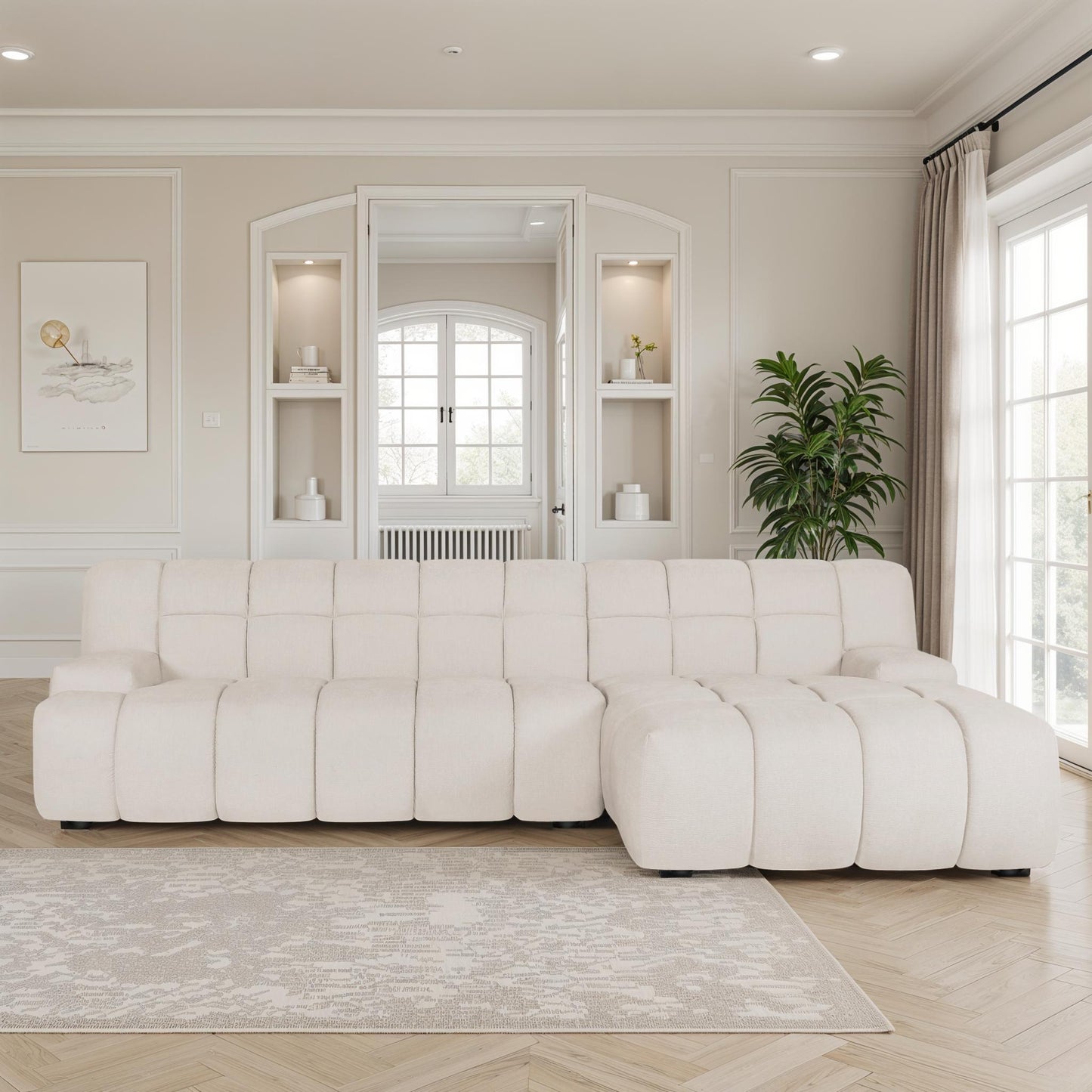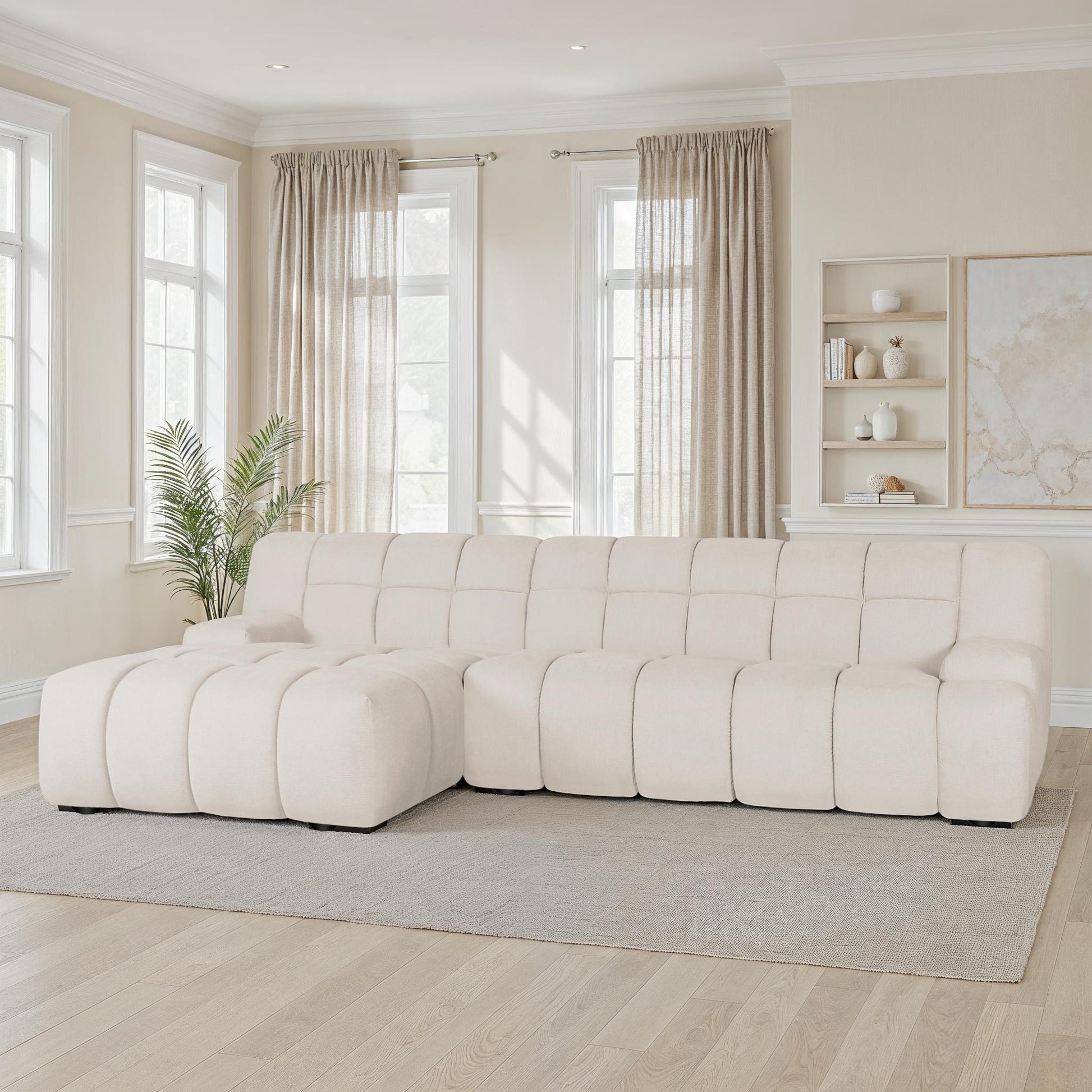 Conçu pour répondre aux besoins de tous les types d’intérieur, ce canapé modulable s’adapte aussi bien aux salons cosy qu’aux grands espaces ouverts. Son revêtement en tissu anti-tache haute performance résiste aux éclaboussures et à l’usure quotidienne, idéal pour les familles, les animaux de compagnie ou les amateurs de praticité.
