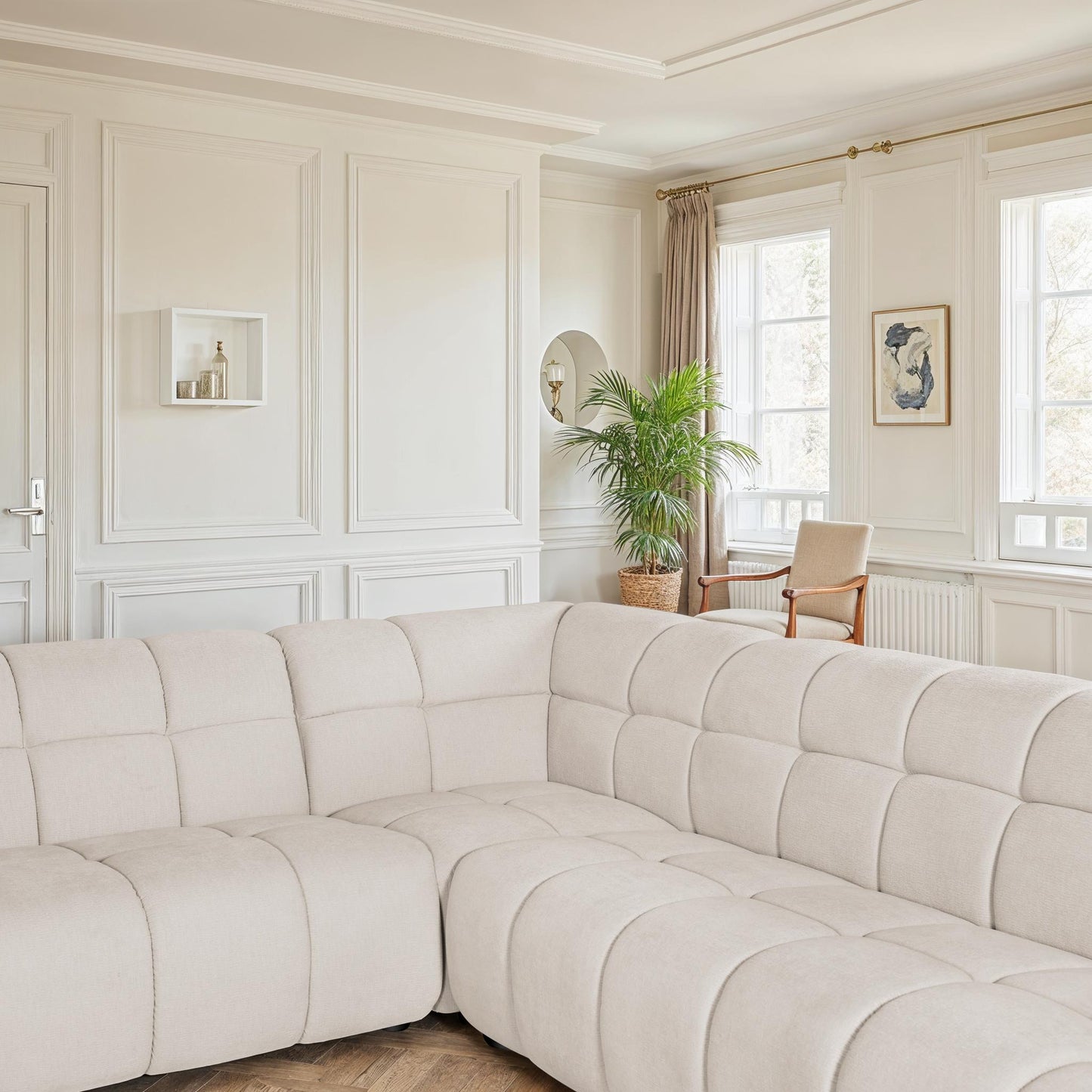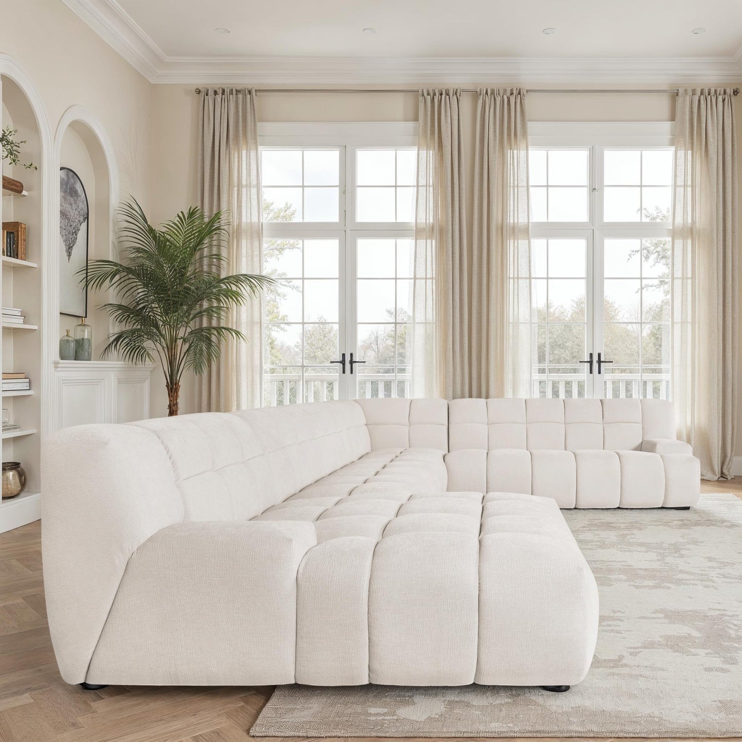 Dans sa version canapé d’angle, il maximise les coins de la pièce et optimise l’espace sans compromettre le confort. Dans sa version panoramique, il devient un véritable espace de vie XXL, parfait pour accueillir toute la famille ou recevoir des invités en toute convivialité.
