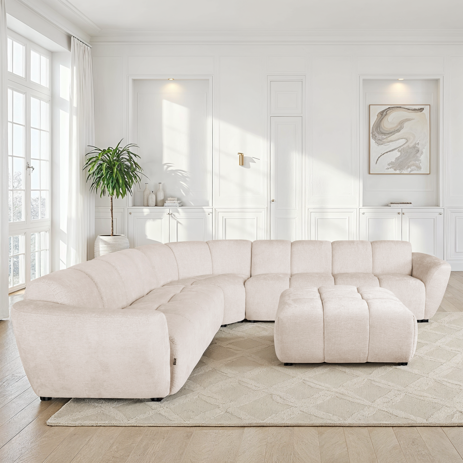 Canapé d'angle 7 places / pouf en tissu anti tache - LILO