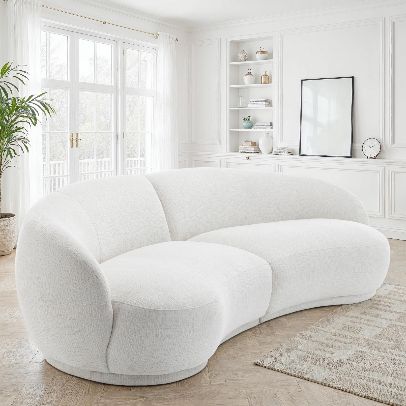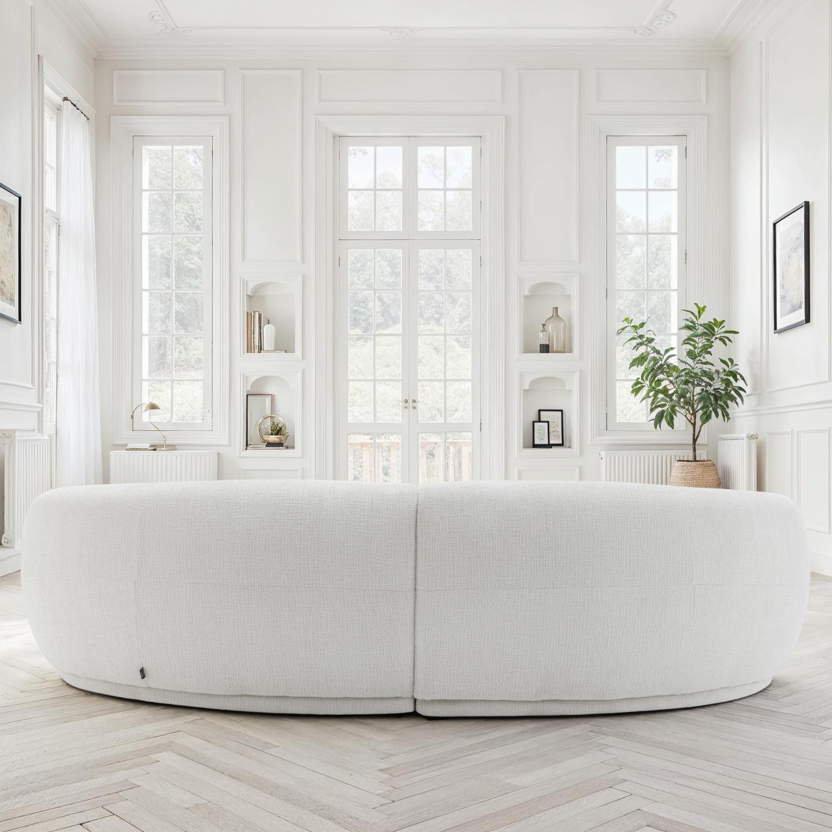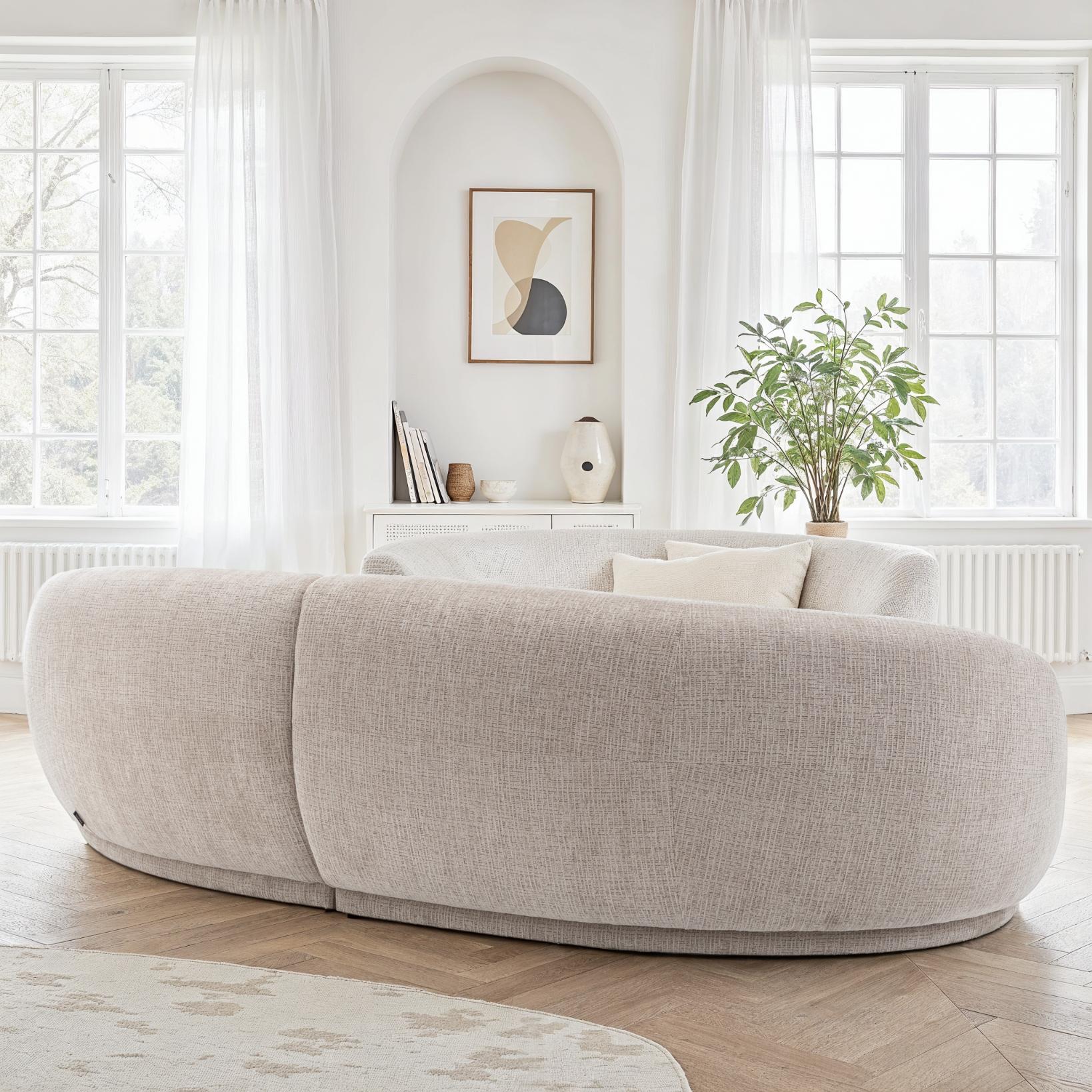 Canapé angle arrondi en tissu anti tache, 266x117xH73CM - JADE