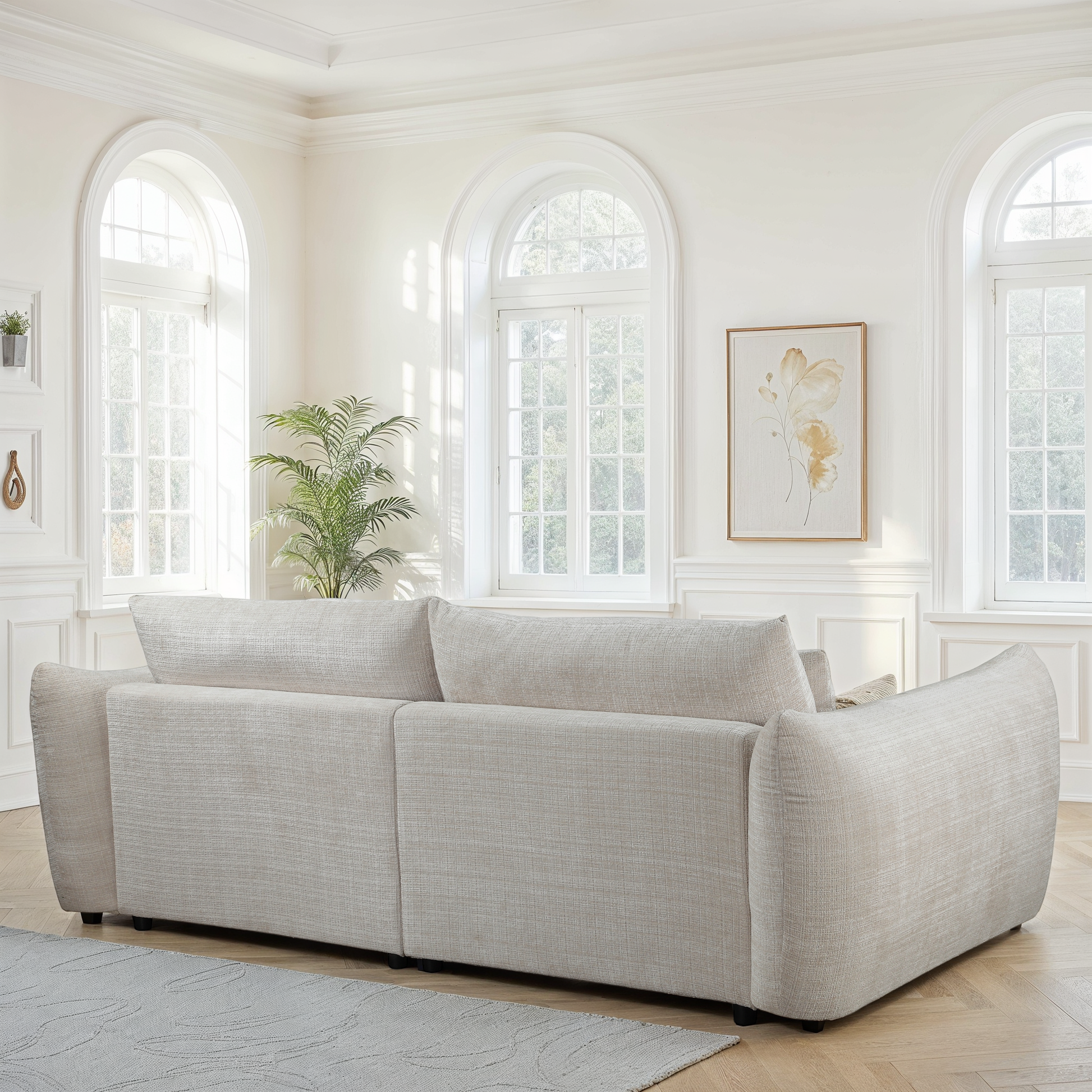 La collection se décline en plusieurs formats pour s’adapter à toutes les configurations : fauteuil spacieux (158 × 124 cm), canapé 3-4 places (259 × 124 cm), canapé d’angle modulable et pouf assorti (105x105xH50CM). Cette modularité permet de créer un espace harmonieux et personnalisé, qu’il s’agisse d’un petit salon cosy ou d’un grand espace de réception.