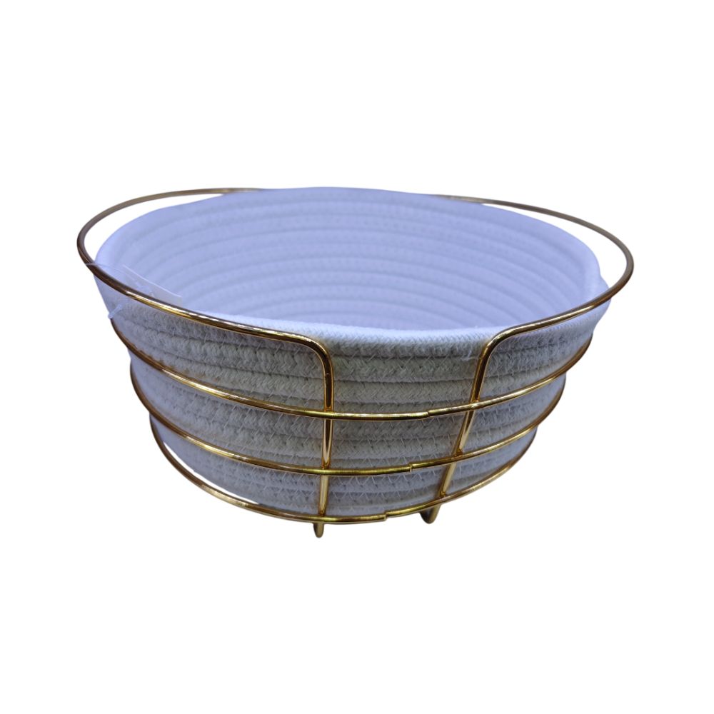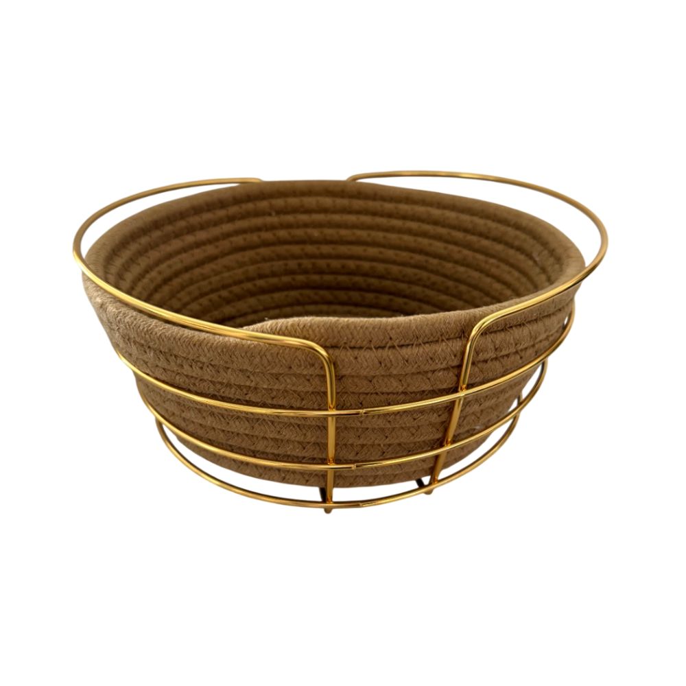 Corbeille à pain en métal doré, élégante et pratique pour une table chic et conviviale.