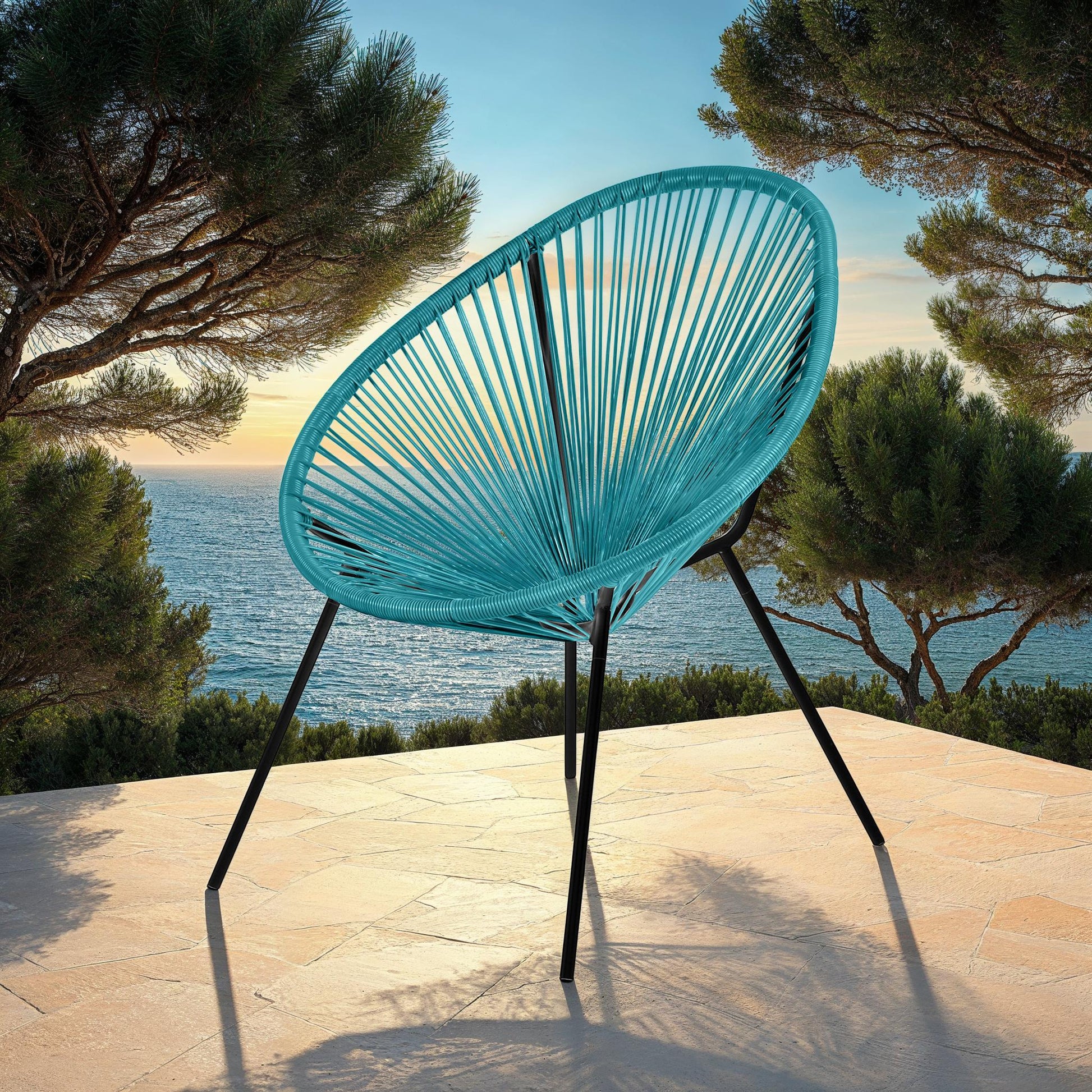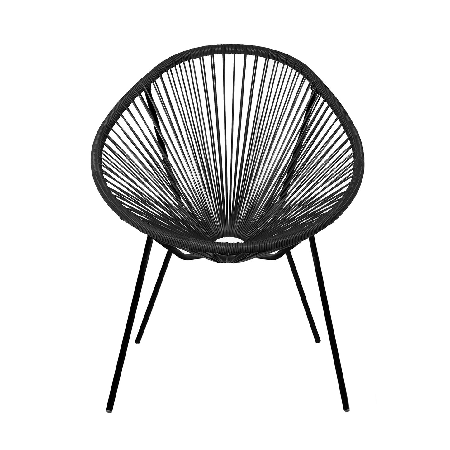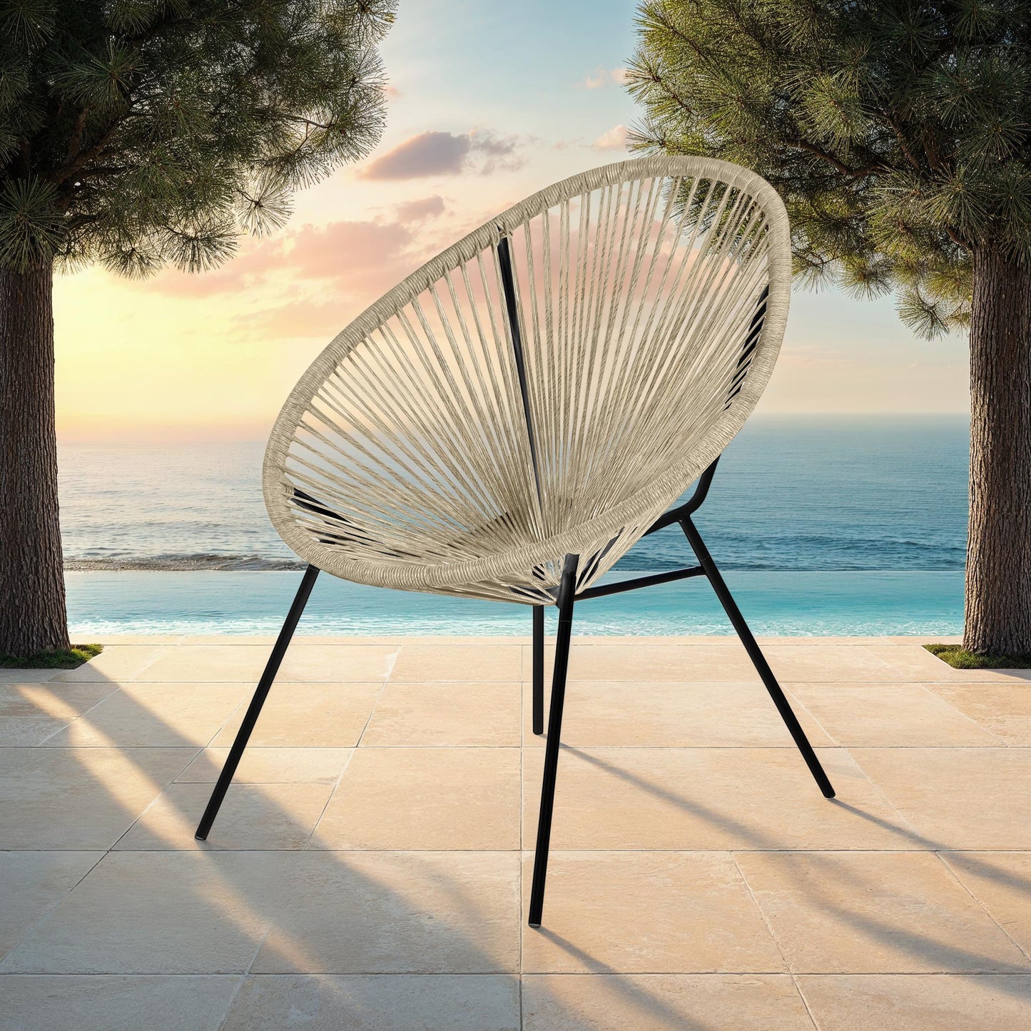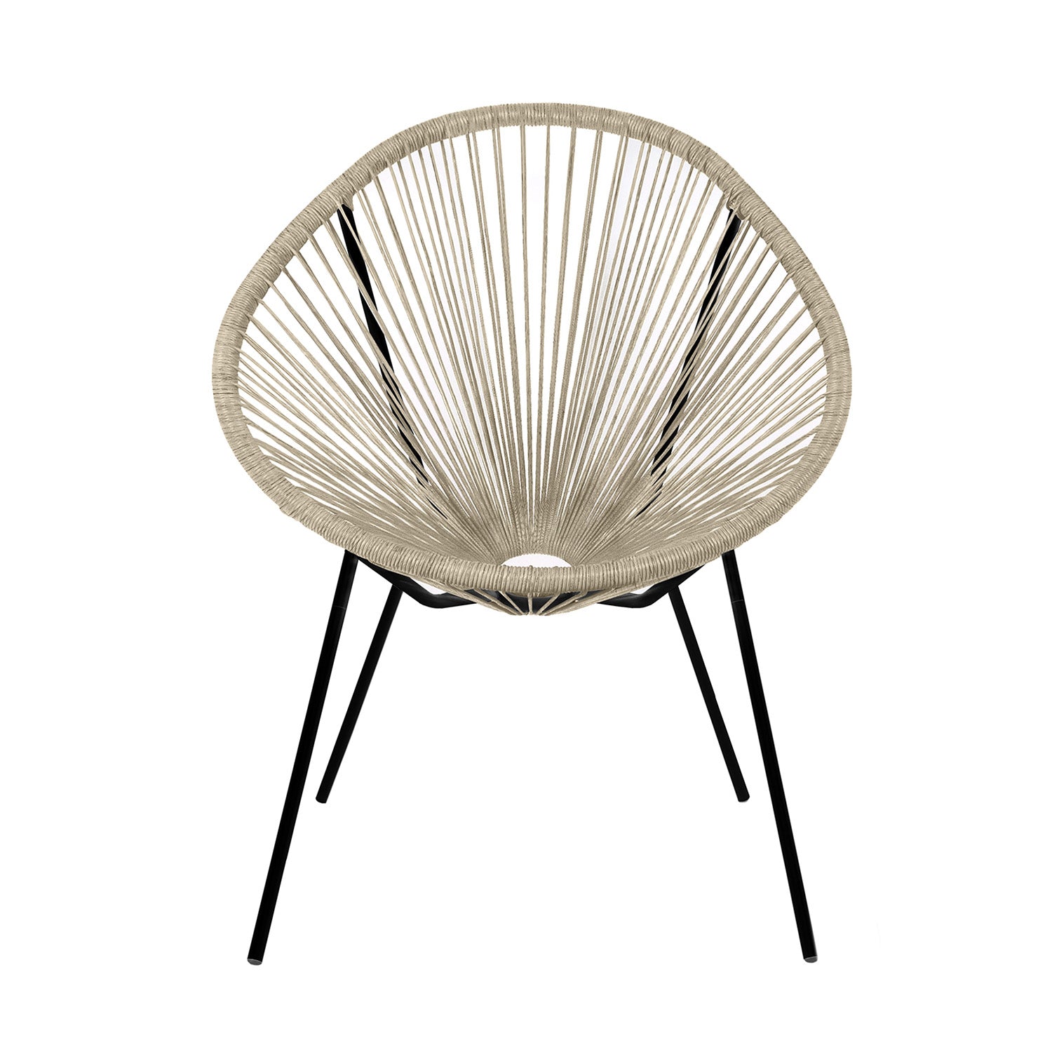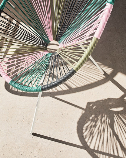 Fauteuil lounge Acapulco en acier et polyrotin, alliant confort et design pour une touche bohème et moderne, en intérieur comme en extérieur.