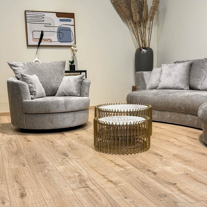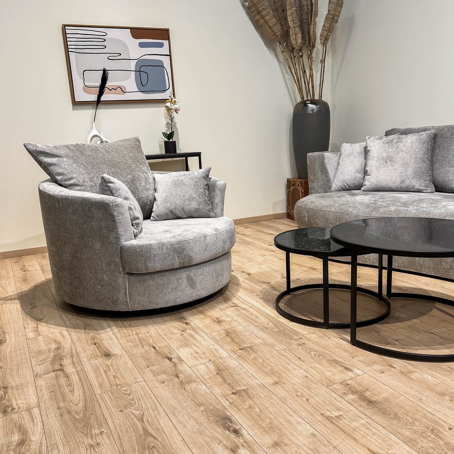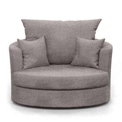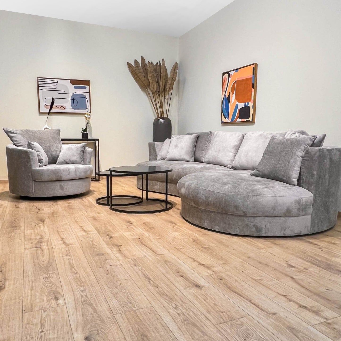 Le fauteuil pivotant en velours taupe OLIVIA, mesurant D113xH68 cm, incarne l'élégance et le confort dans chaque détail. Son revêtement en velours de qualité supérieure offre une sensation luxueuse au toucher, tandis que sa silhouette raffinée apporte une touche de sophistication à tout espace de vie. Avec sa fonction pivotante, ce fauteuil vous permet de vous détendre tout en profitant d'une liberté de mouvement maximale, ajoutant une touche de fonctionnalité à son allure chic.