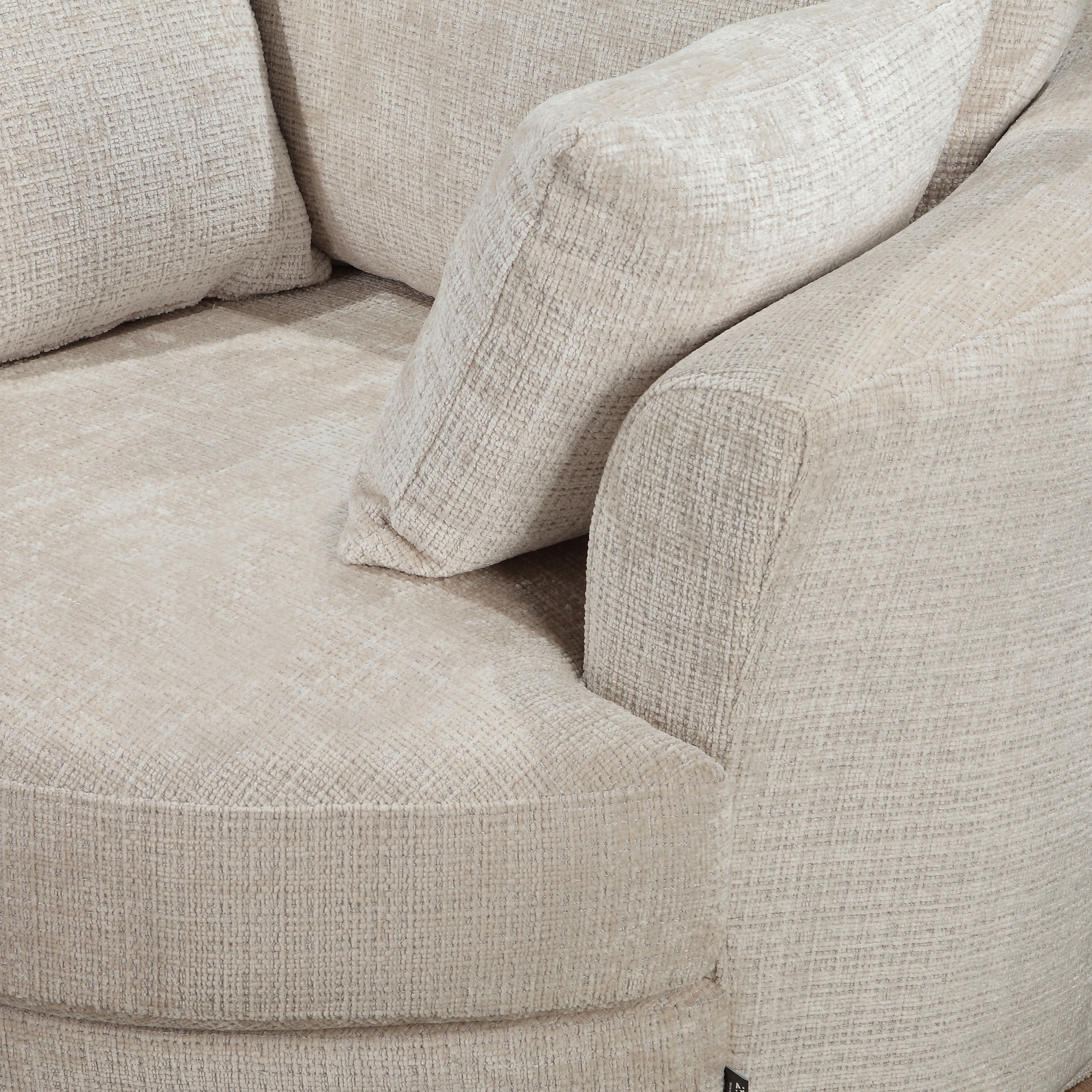 Le fauteuil pivotant en velours taupe OLIVIA, mesurant D113xH68 cm, incarne l'élégance et le confort dans chaque détail. Son revêtement en velours de qualité supérieure offre une sensation luxueuse au toucher, tandis que sa silhouette raffinée apporte une touche de sophistication à tout espace de vie. Avec sa fonction pivotante, ce fauteuil vous permet de vous détendre tout en profitant d'une liberté de mouvement maximale, ajoutant une touche de fonctionnalité à son allure chic.