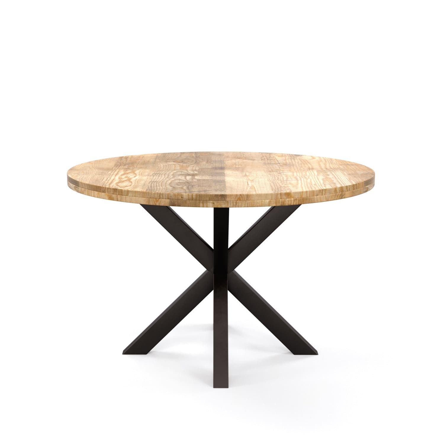 Grande Table à manger Ronde en bois massif- naturel/noir, EP4,5CM - FLAVIA