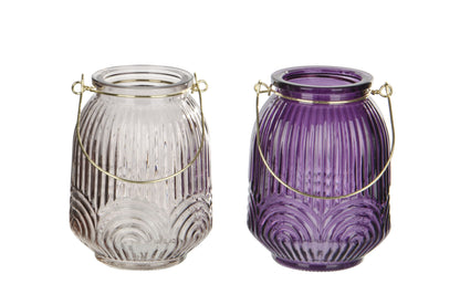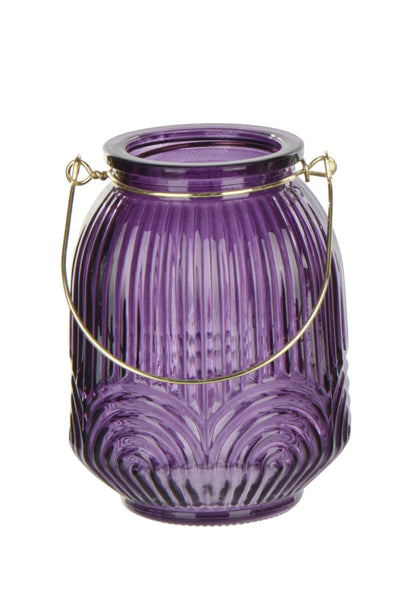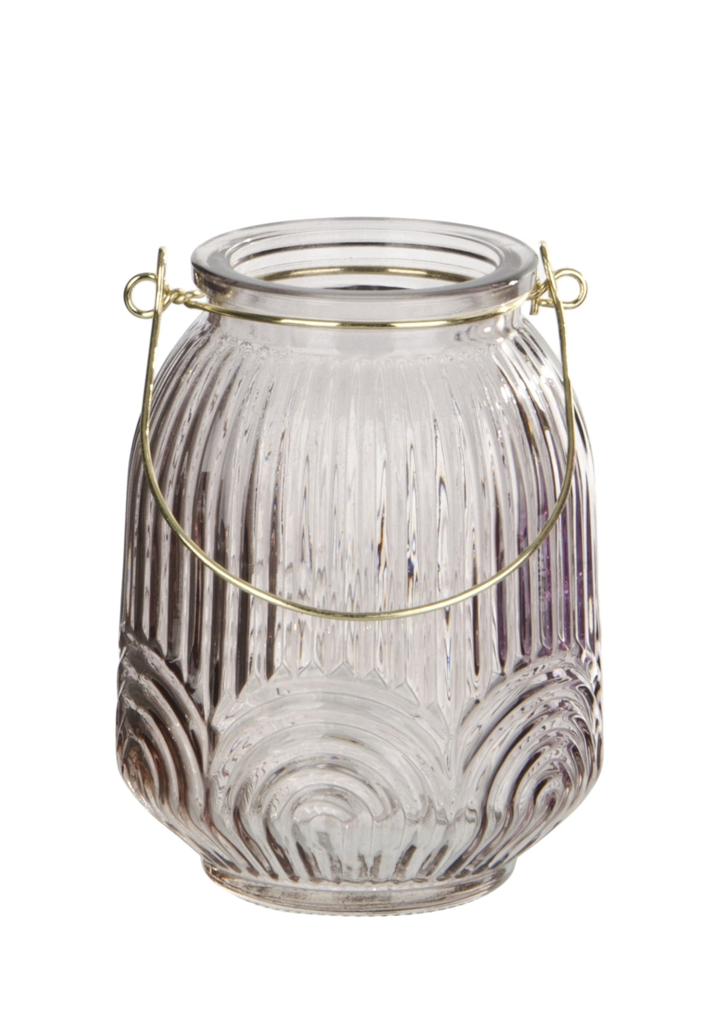 Lanterne photophore en verre avec poignée dorée H12 cm