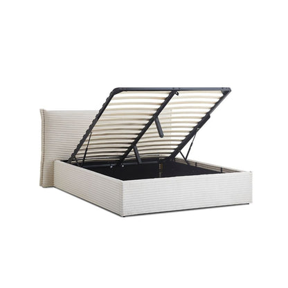 Ce lit ne se distingue pas seulement par son design, mais également par son côté fonctionnel. Il est équipé d’un système de rangement intégré, idéal pour optimiser l’espace dans votre chambre. Vous pouvez y stocker vos draps, couvertures ou autres objets, tout en gardant votre pièce bien organisée. Avec ses lignes épurées et ses finitions soignées, ce lit en tissu offre un confort optimal pour des nuits paisibles. Que vous choisissiez la taille 140x200 cm ou 160x200 cm, il s’adaptera à vos besoins et apportera une touche d’élégance intemporelle à votre intérieur.