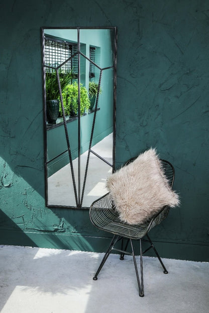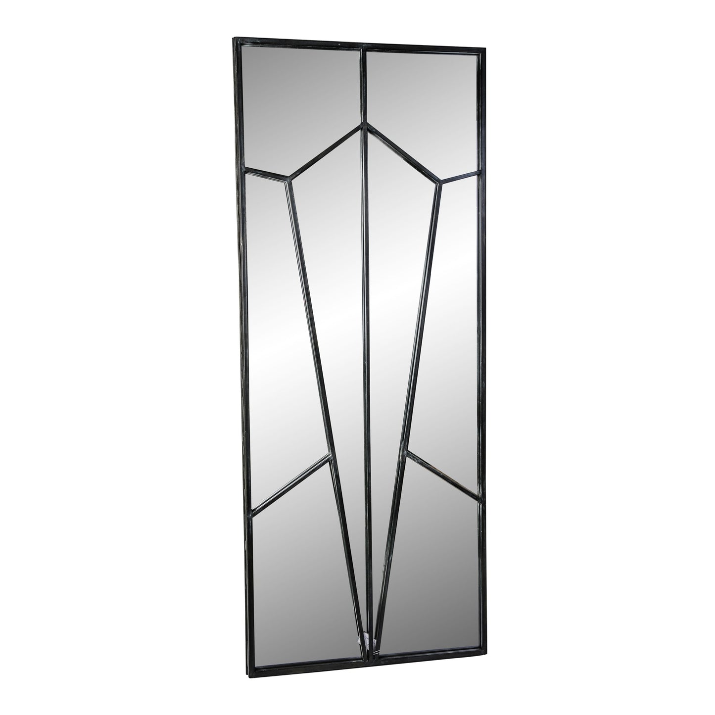 Ce miroir Tavish a tout à fait la touche art déco grâce à la forme de diamant dans le cadre noir. Le miroir est assez grand et vous permet de vous voir clairement. Il convient donc parfaitement à un couloir ou à une chambre à coucher et à presque tous les styles de vie. Dimensions Longueur : 61 cm Largeur : 3 cm Hauteur : 151 cm