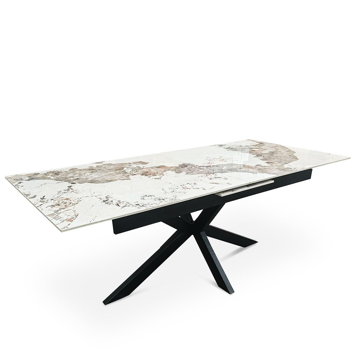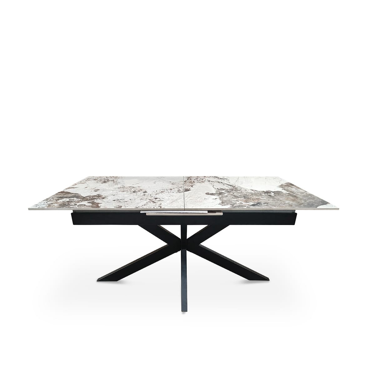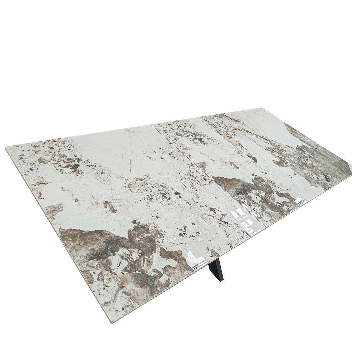 Cette table à manger élégante dispose d'un **plateau en céramique** de haute qualité, offrant à la fois **robustesse** et une **esthétique moderne**. La céramique est un matériau durable, facile à entretenir et résistant aux rayures et à la chaleur, idéal pour les repas quotidiens. Le plateau est parfaitement lisse et présente une finition qui peut varier selon le design choisi, allant de teintes neutres comme le blanc ou le gris, à des motifs plus audacieux pour un look contemporain.