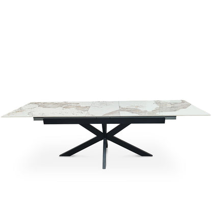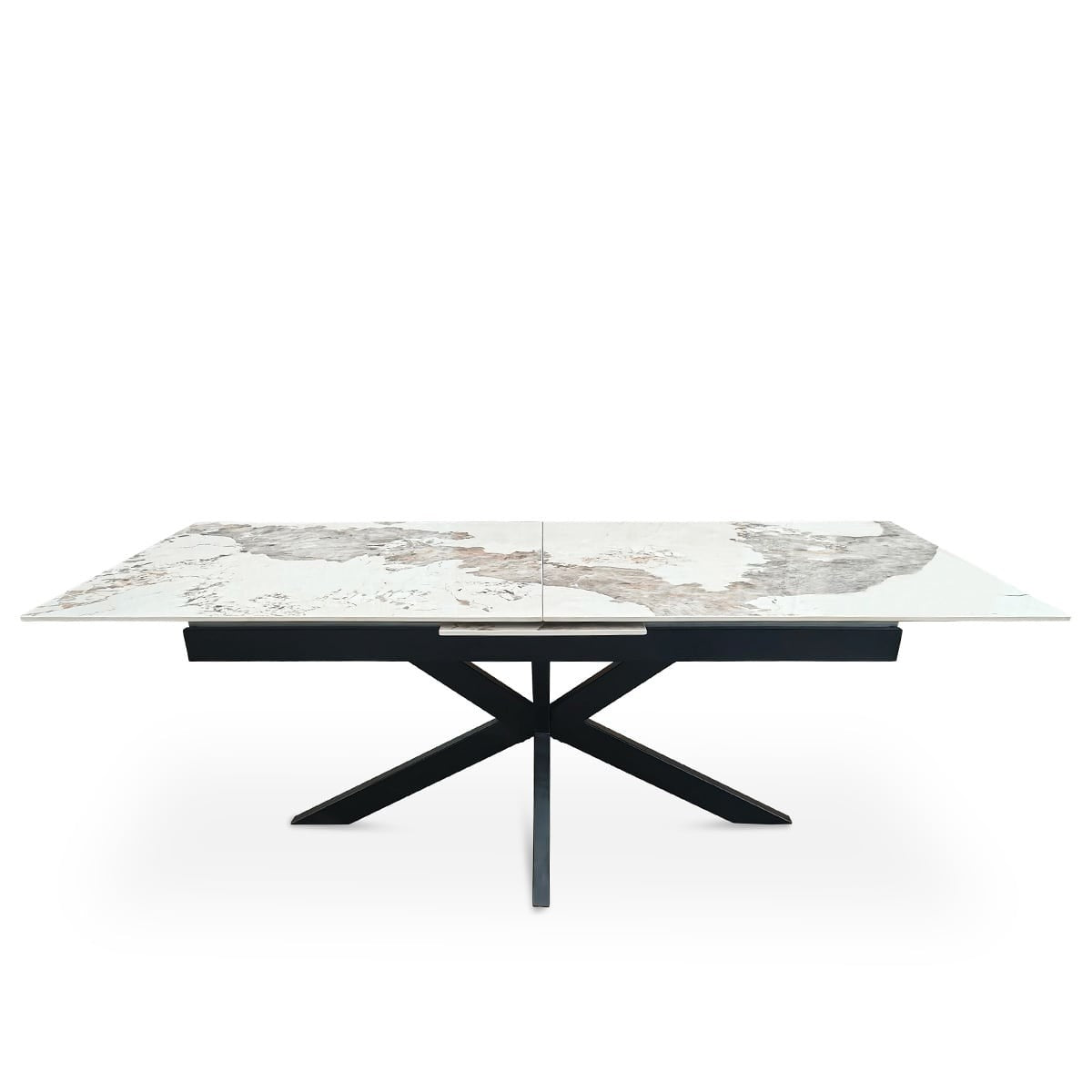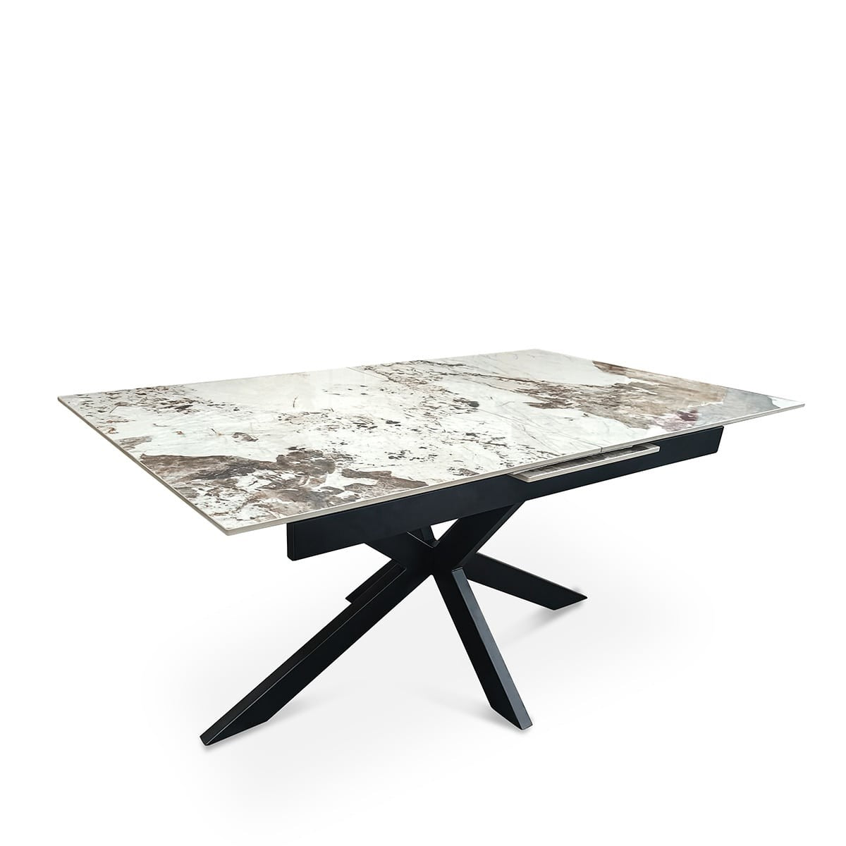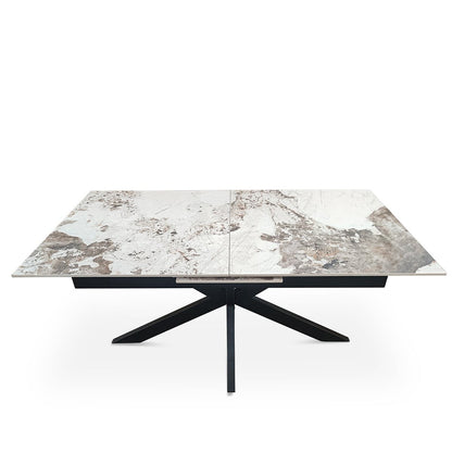 Cette table à manger élégante dispose d'un **plateau en céramique** de haute qualité, offrant à la fois **robustesse** et une **esthétique moderne**. La céramique est un matériau durable, facile à entretenir et résistant aux rayures et à la chaleur, idéal pour les repas quotidiens. Le plateau est parfaitement lisse et présente une finition qui peut varier selon le design choisi, allant de teintes neutres comme le blanc ou le gris, à des motifs plus audacieux pour un look contemporain.