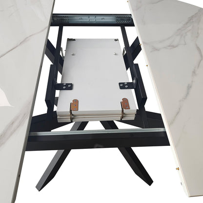 Table à manger ronde extensible avec plateau en céramique, D120-150XH76CM - PILAR