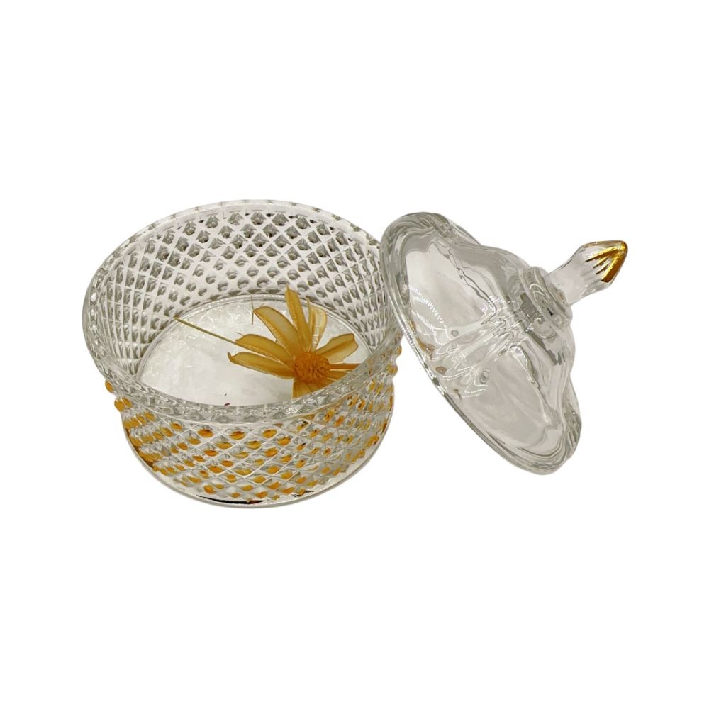 sucrier en verre transparent et dore, D10,3xH10,4 cm