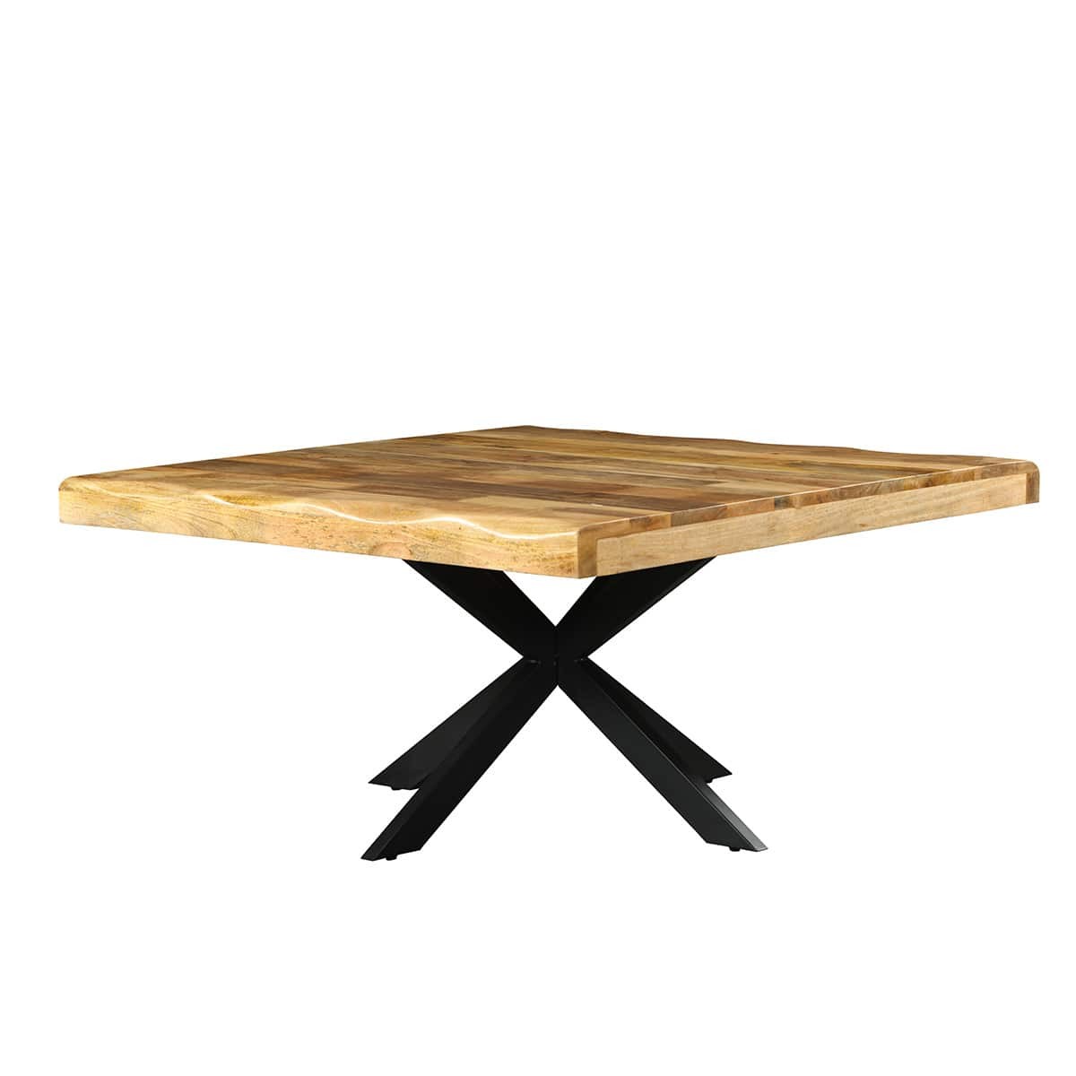 Table à manger carré avec plateau en bois ondulé, EP6CM, H76CM - POPPY