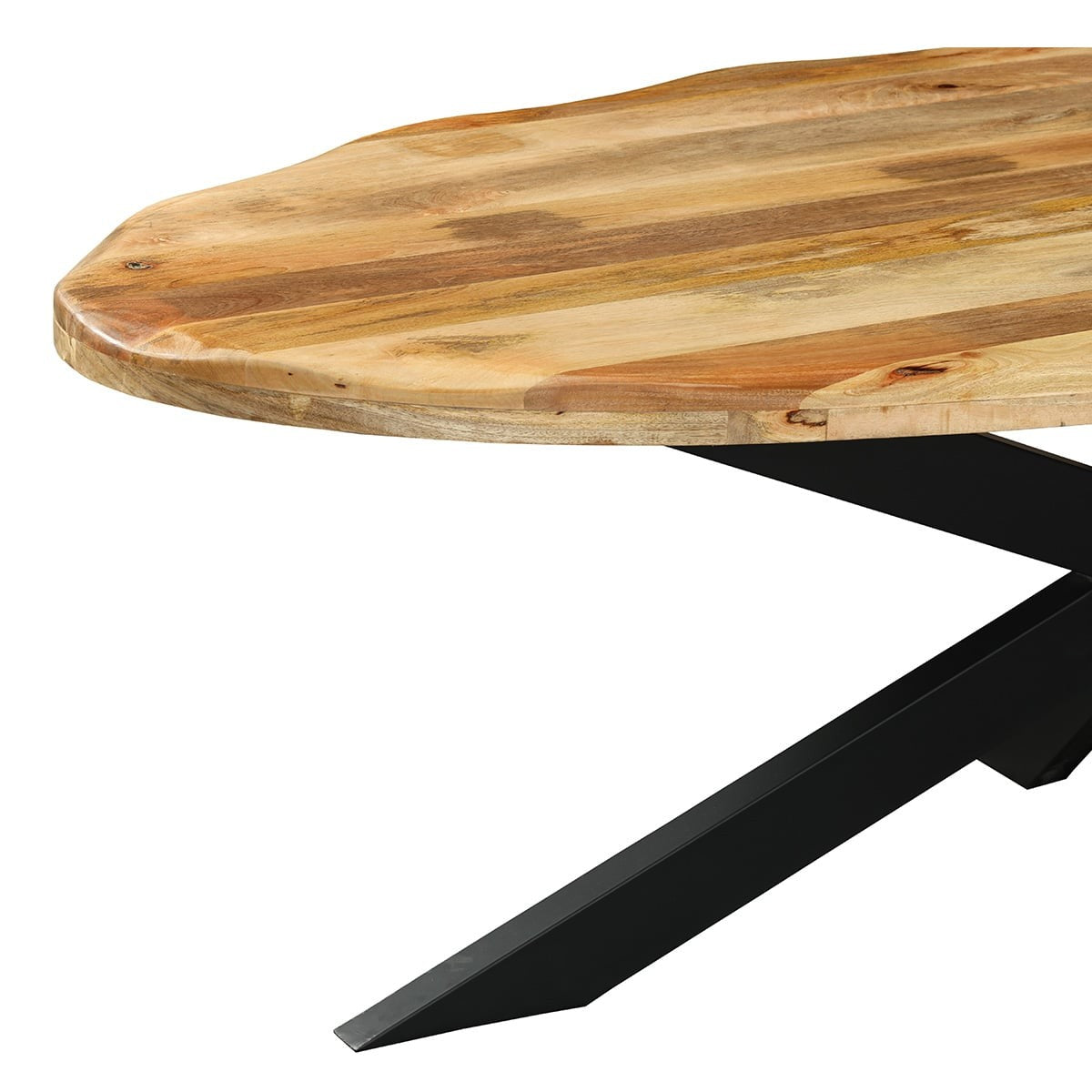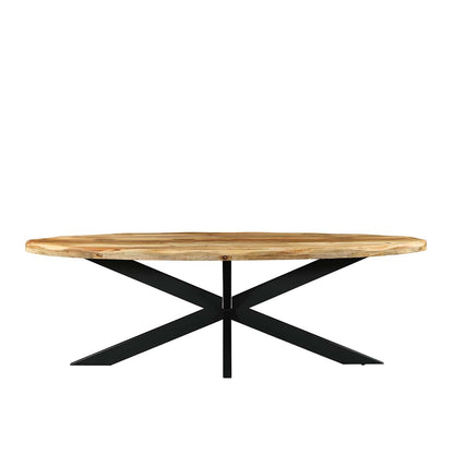 Le bois est soigneusement sélectionné pour ses veines naturelles, et la finition met en valeur ses nuances chaudes et sa texture authentique. Cela rend chaque table unique, avec des détails qui racontent l’histoire vivante du bois. Les matériaux robustes et durables assurent une longévité remarquable, tandis que la construction artisanale confère à l’ensemble un charme intemporel. Ce mariage parfait entre nature et design moderne fait de cette table une pièce maîtresse qui apporte chaleur et caractère à tout type d’intérieur. Les pieds en métal noir apportent une touche de modernité et de contraste à l'ensemble. Leur structure solide garantit la stabilité de la table, tout en mettant en valeur le design épuré et minimaliste. Le style industriel des pieds s’harmonise facilement avec des espaces contemporains ou des ambiances plus classiques, offrant ainsi une grande polyvalence. Cette table devient rapidement le centre d’attention de votre salle à manger, prête à accueillir des conversations animées, des dîners élégants ou des repas simples mais mémorables dans un cadre raffiné.