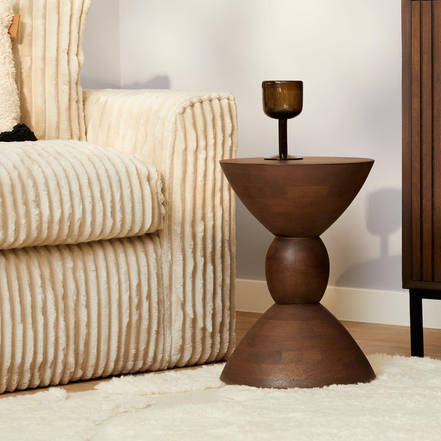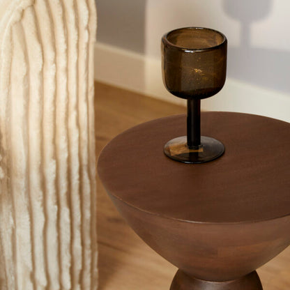 Table basse en bois de manguier finition noyer, D30xH40CM