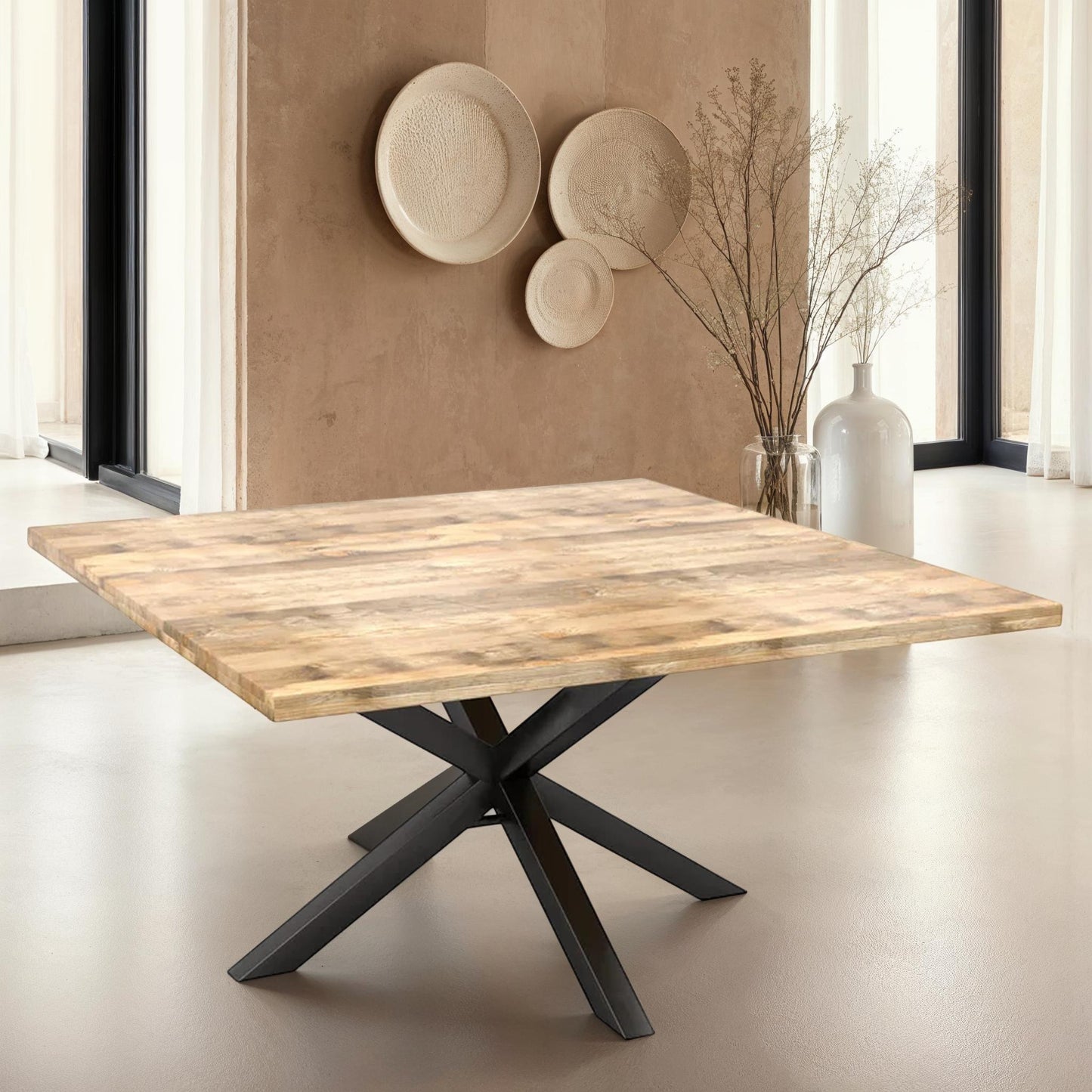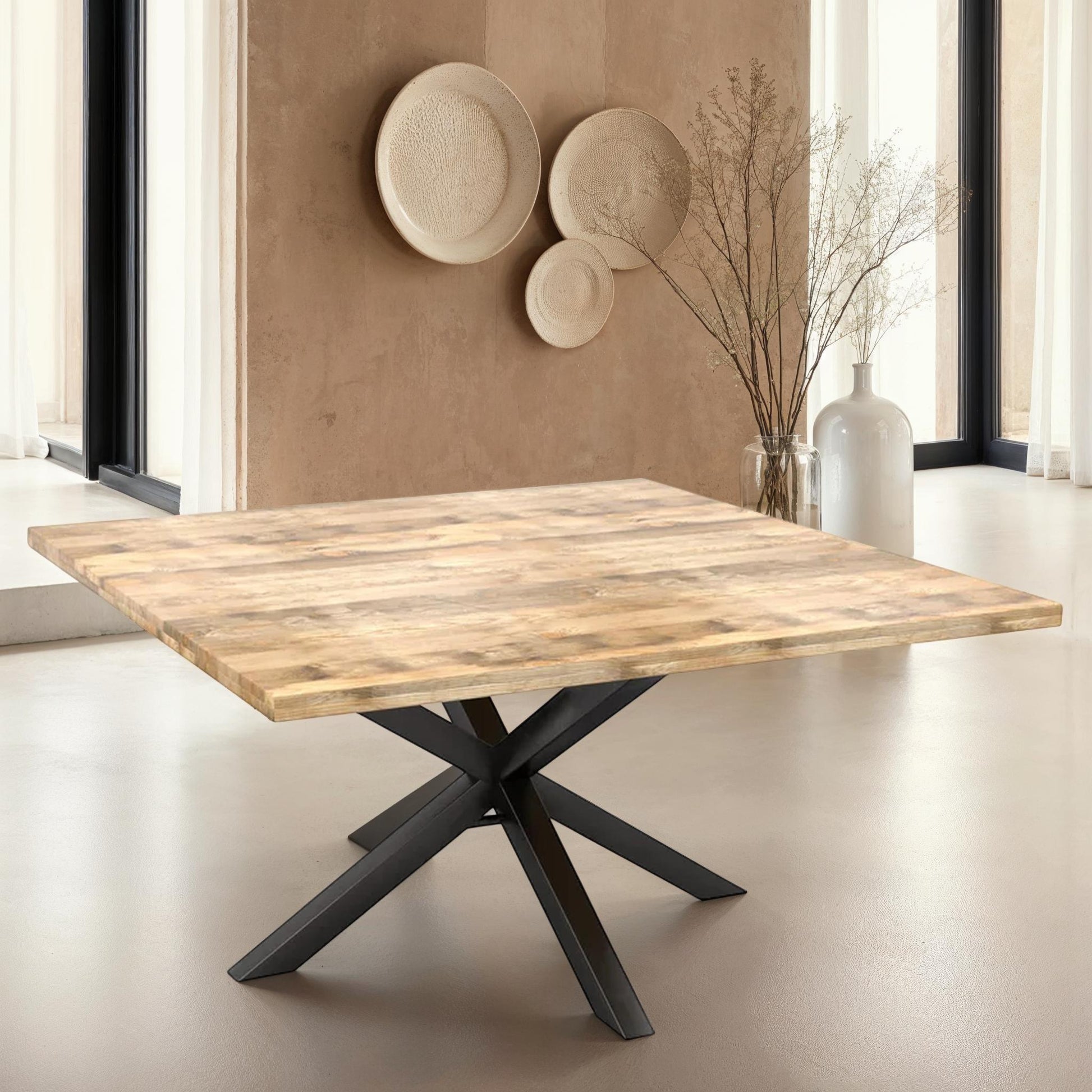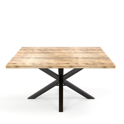 Table en bois de manguier carré pieds spider noir, 150x150xH76cm - FLAVIA