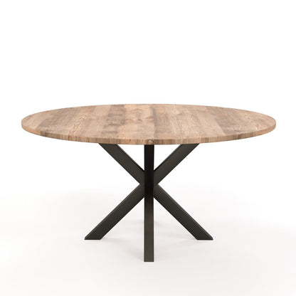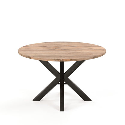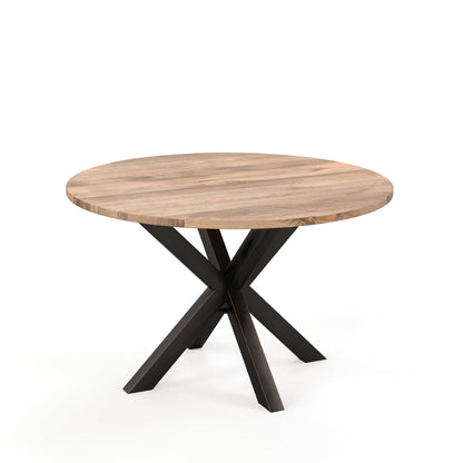De style contemporain et associant le bois massif bois de manguier et le métal, la table SPRING a fière allure. Cette table ronde repose sur un original et épais pied en métal noir, idéal pour libérer un maximum d'espace au sol et donc accueillir confortablement vos convives. Le plateau de cette table bois est quant à lui en bois massif et affiche une belle épaisseur. Il mesure 120 et 150 cm. La finition brute de cette table moderne ne manquera certainement pas de vous séduire. Largeur : 120 | 150 cm Longueur: 120 | 150 cm Hauteur : 76 cm Poids du produit: 46,40 | 60,20 kg Composition: Acacia massif naturel verni  Pied métal noir mat Le produit vous sera livré gratuitement partout en Europe , le plateau est dans un colis et les pieds dans un autre colis pour faciliter la manipulation dans les endroits étroits , Le plateau de la table est déja vernie , aucun traitement n'est nécessaire  , Le montage est super simple , c'est juste des boulons à fixer entre le plateau et le pieds , temps de montage moins de 7minutes.