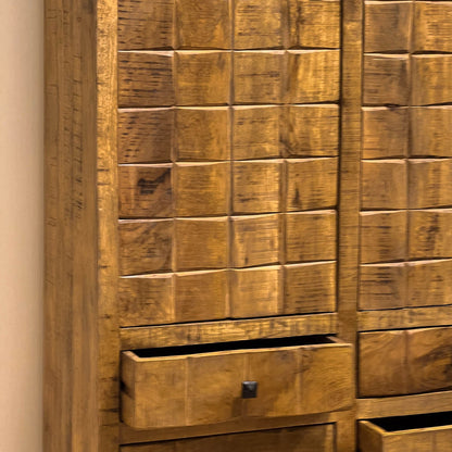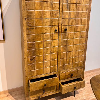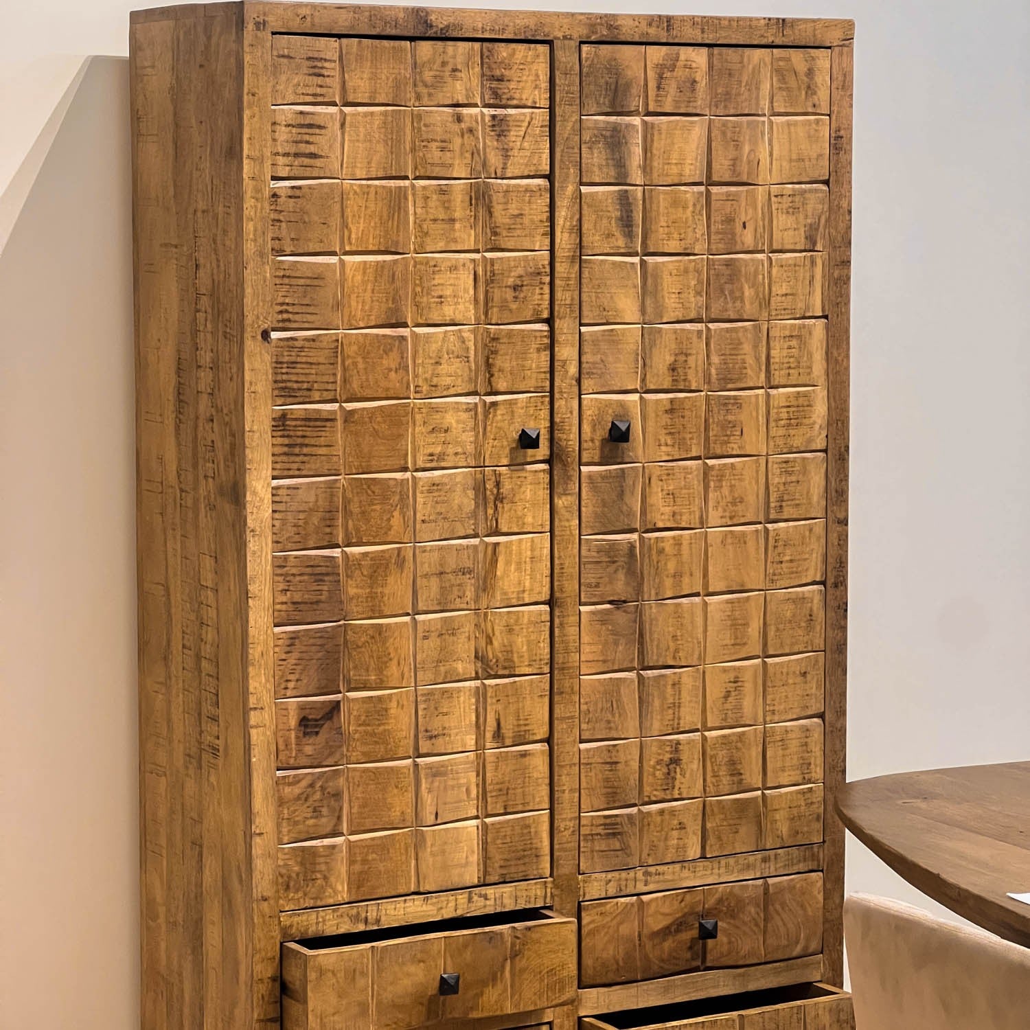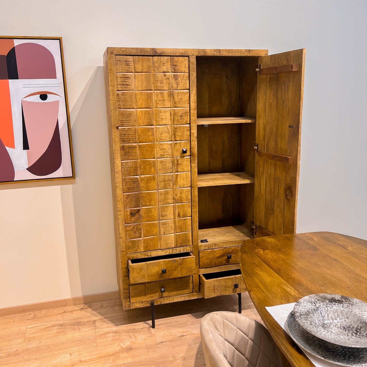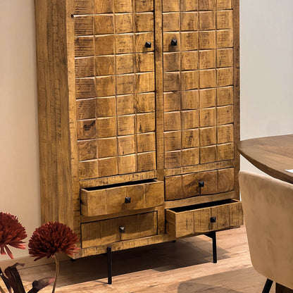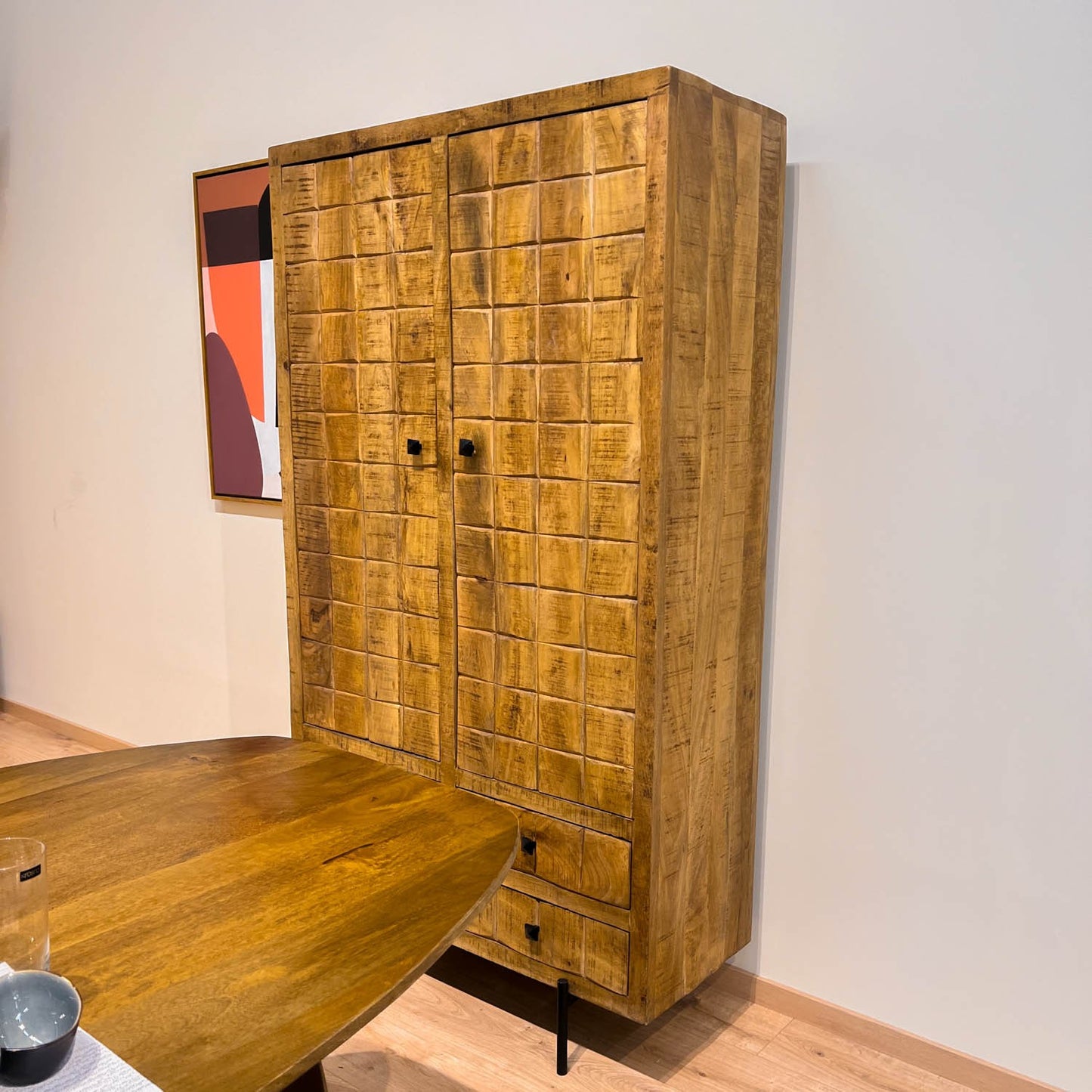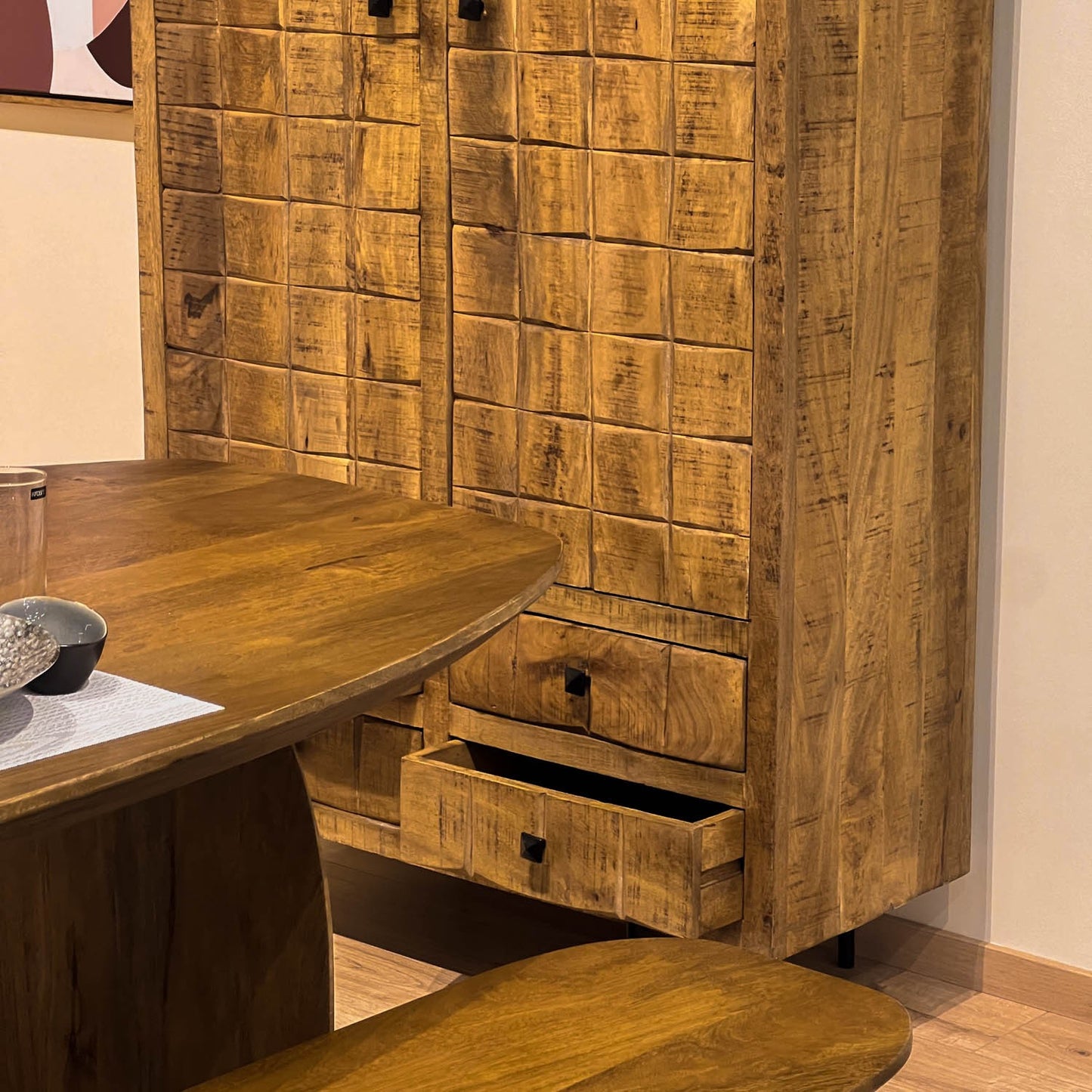 Vaisselier en bois de manguier, 2 portes 4 tiroirs, 100x40xH180 cm - MARIA
