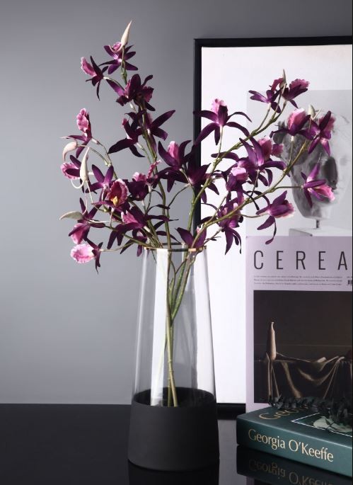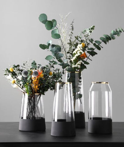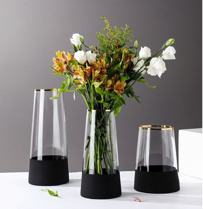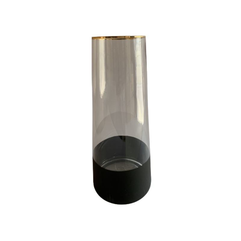 Vase en verre avec fond noir et bordure doré, D9xH30CM