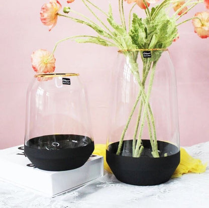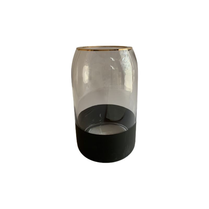 Vase en verre avec fond noir et bordure dorée, D10xH18,5CM