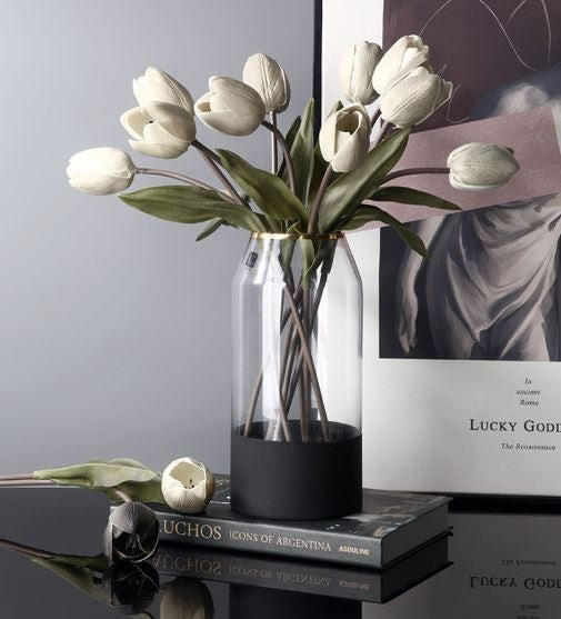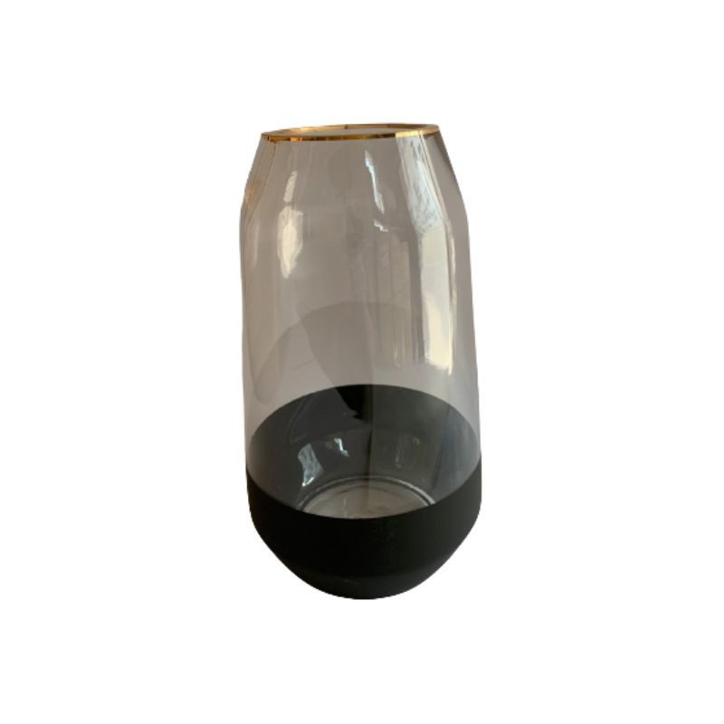 Vase en verre avec fond noir et bordure dorée, D9xH28CM