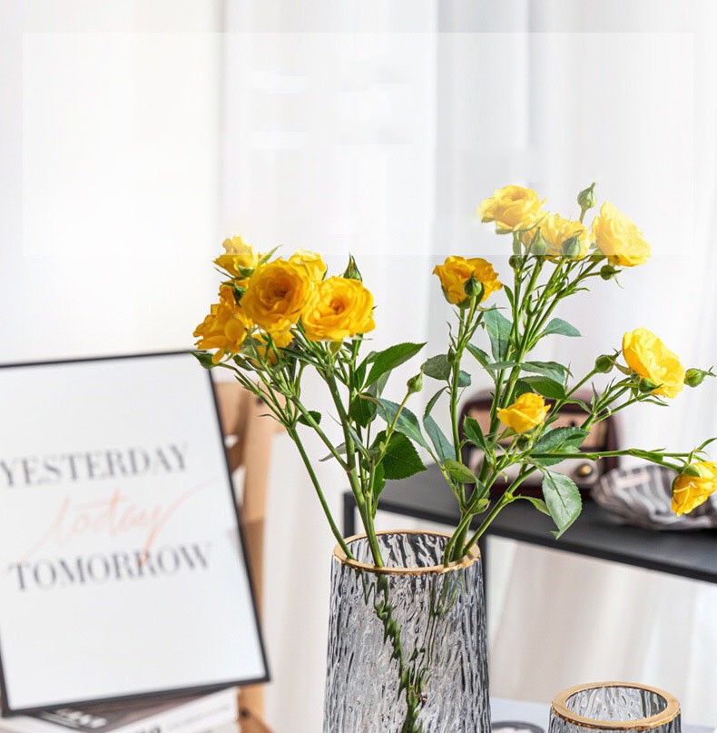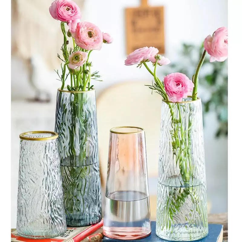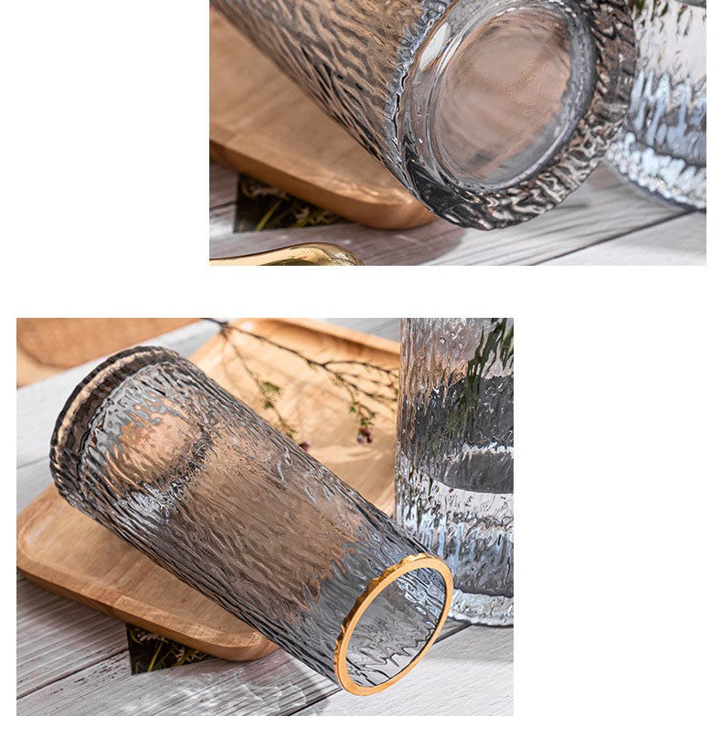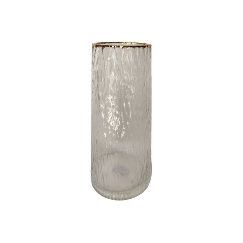Vase en verre transparent avec bordure doré, D8xH23,5CM - RAPHA
